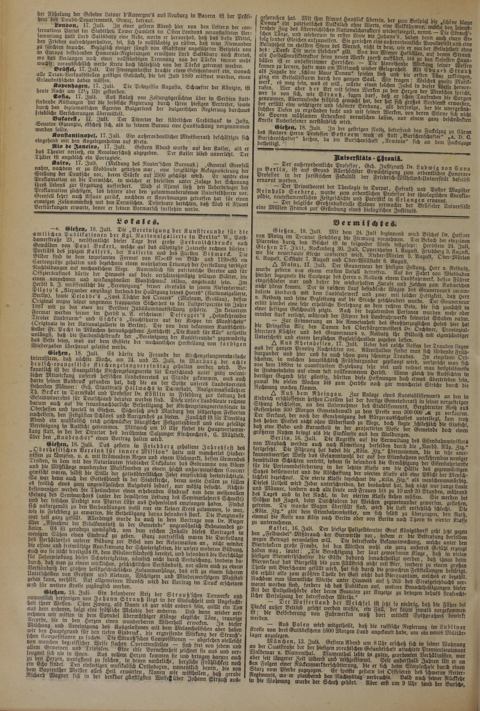 ~ ?us Polen wirb mitgetheilt, baß bie russische Regierung im Lubliner lager anzuleg'en ®ut8beri6ern 1600 Morgen Laub angekauft habe, um -in neues Milttär- „„ . München, 13. Juli. Gestern Ab-nb um 8 Uhr erschoß sich tn seiner Wobnuna H e 6 m »eeußtschen G-sanblschaft attachitte Premt-rlieutenam ^e WMSnnpr1 mQeH6.a 'k ?'um-nlh-l lebte tn guten, georbneten Verhältnissen, war , ^ug-r-r Zeit leibmb unb mißgestimmt. Seil anberthalb Jahren litt er an ben Folgen einer Rückenmarkserschütterung, bie er sich beim Steeplechase burch einen Siurz °°m Pf-rbe zugerogen. Er speiste gestern bei Officieren b-s schweren Reiter- an8k ®° et pfuubernb ben Nachmittag verbrachte. Balb nach seiner Rückkehr in die Wohnung wurde der Schuß gehört. Aber erst um 9 Uhr sand der Bursch^