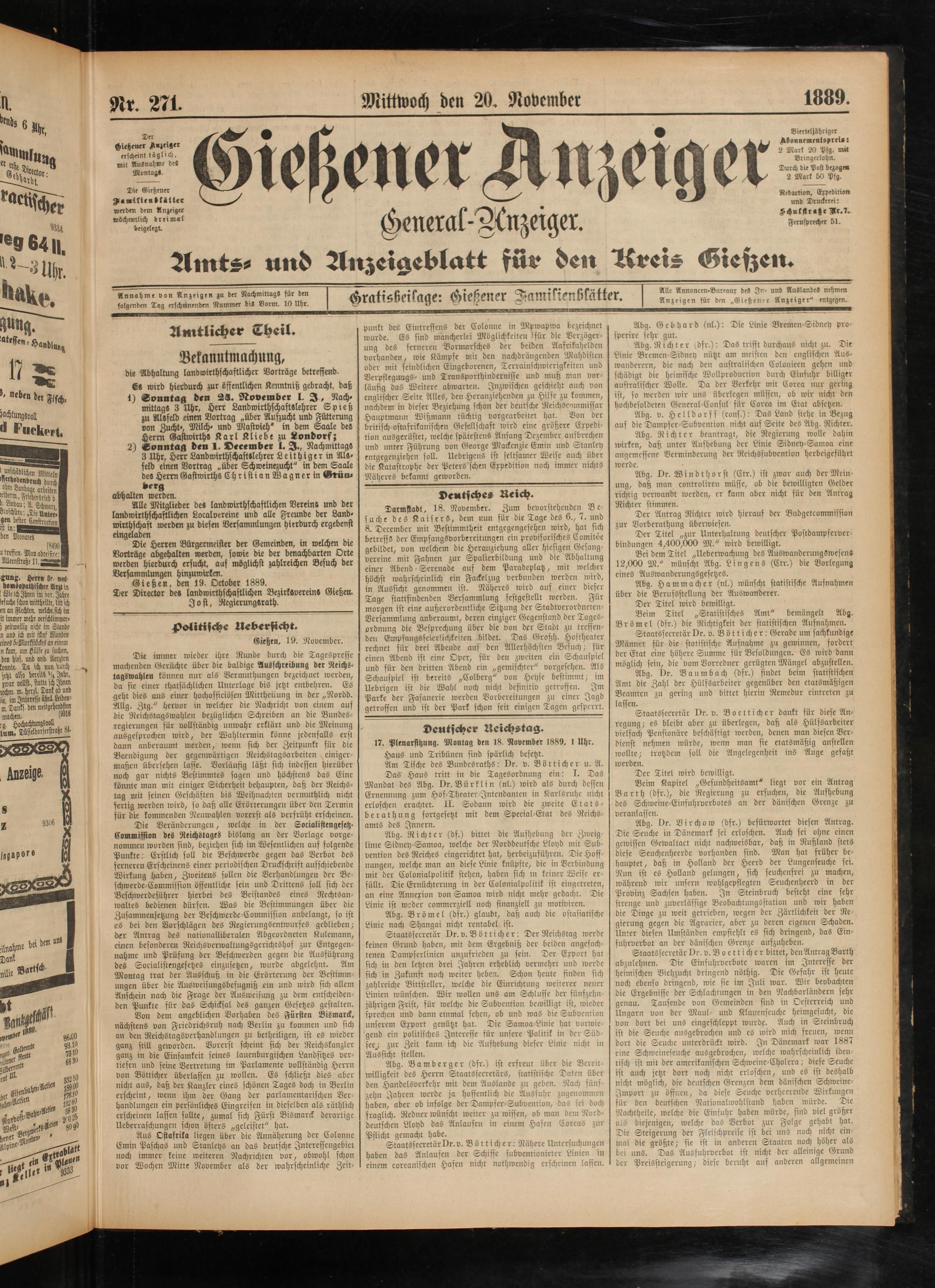 17. Plenarsitzung. Montag den 18. November 1889, 1 Uhr.