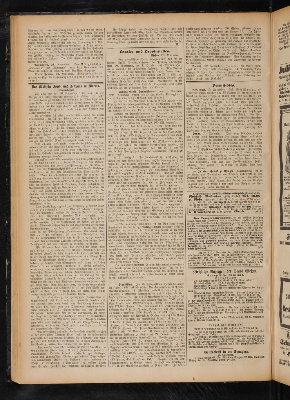 Kirchliche Anzeigen der Stadt Gießen.