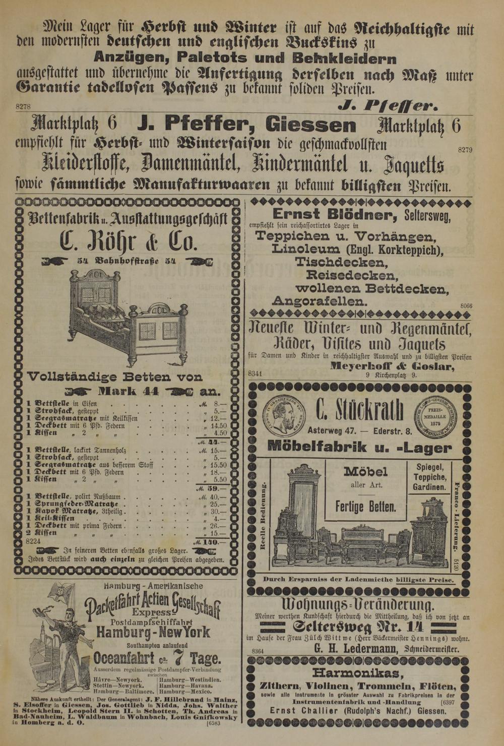Marktplatz 6 J. Pfeffer, Giessen Marktplatz^ empfiehlt für Herbst- inid Winterfaison die geschmackvollsten 8