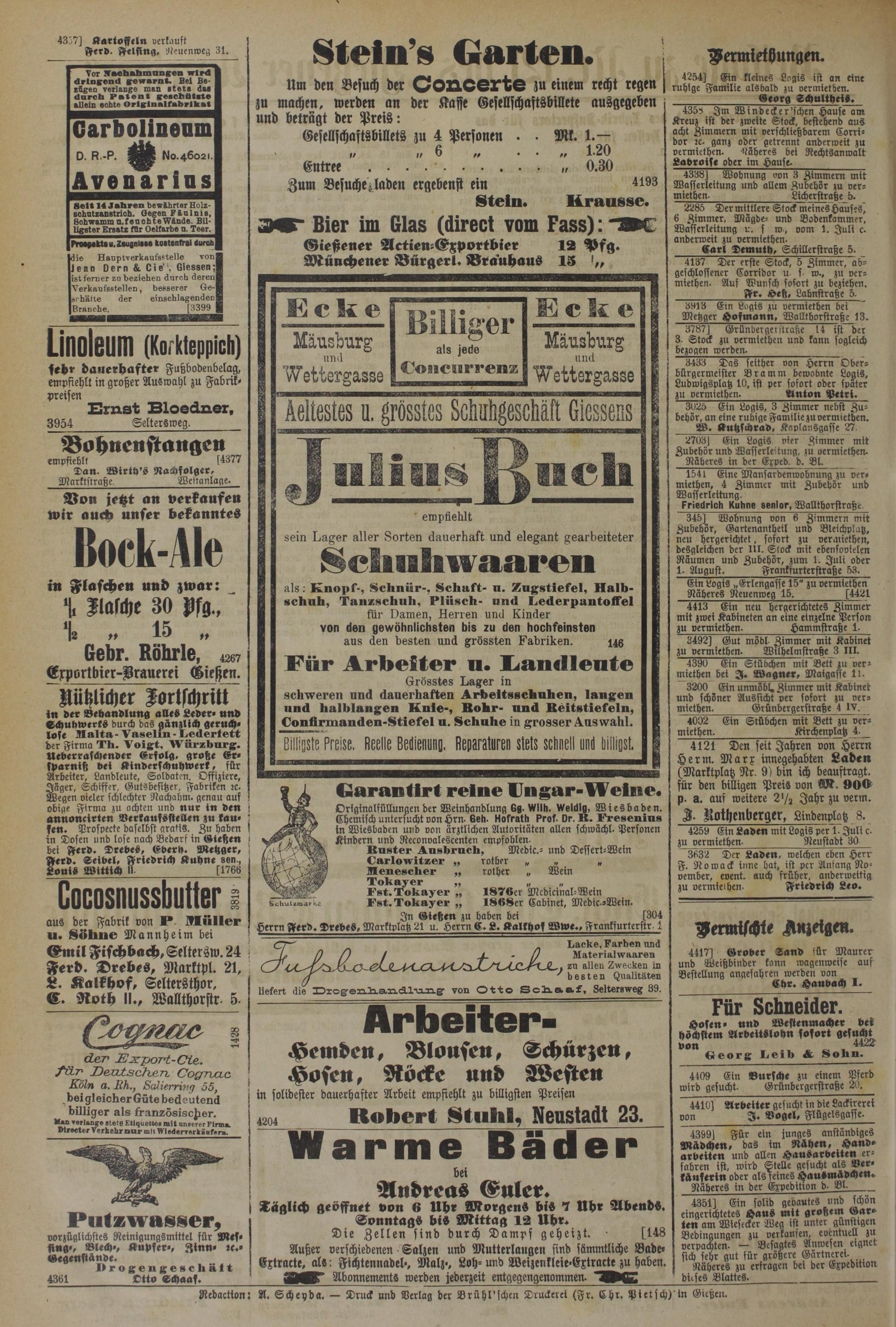 Nedaction: A. Scheyda. — Druck und Verlag der Brühl'schen Druckerei (Fr. Ehr. Pietsch) in Gießen.