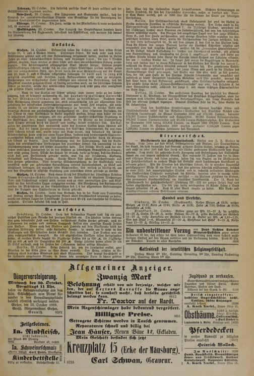 erhält von mir derjenige, welcher mir den, der auf Textor- Terrasse die Bäume angeschnitten hat, so namhaft macht, daß derselbe gerichtlich belangt werden kann. 8612