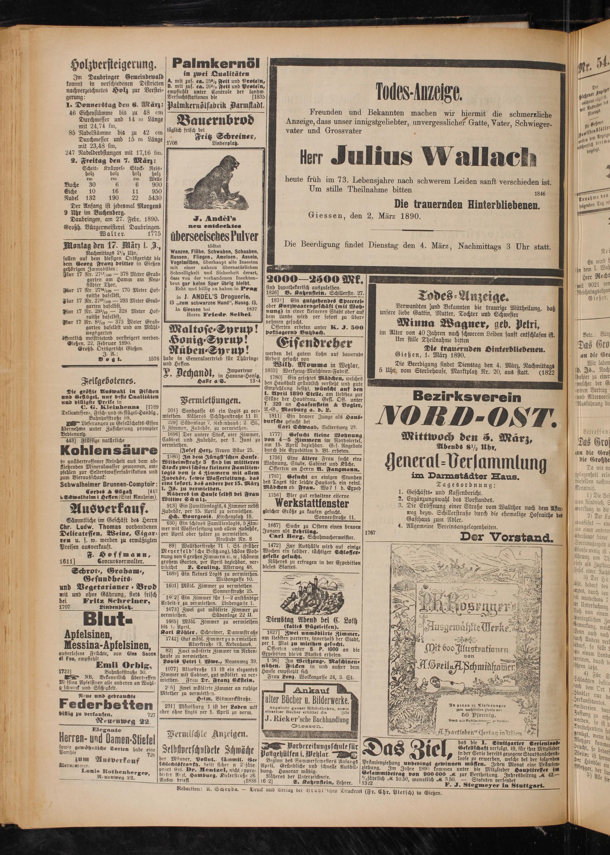 öffentlich meistbietend versteigert werden. Gießen, 22. Februar 1890.