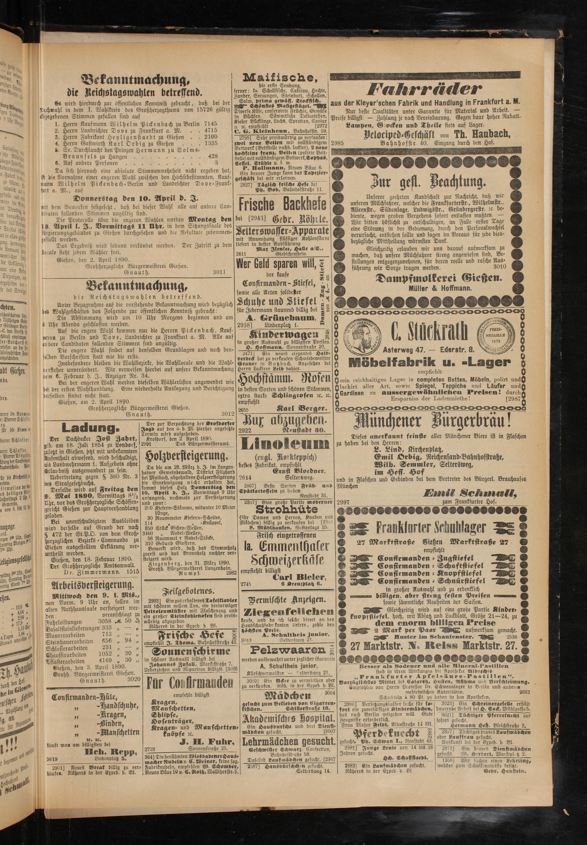 Gießen, den 2. April 1890.