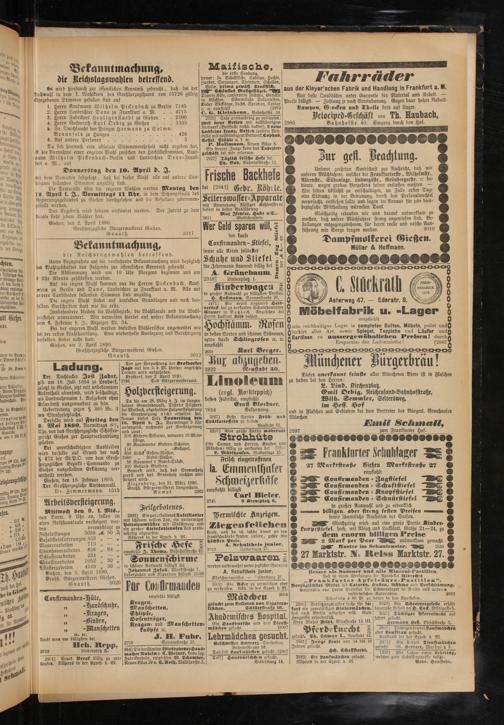 Pflasterarbeiten 4169 M 30 Gießen, den 3. April 1890. Großh. Bürgermeisterei Gießen.