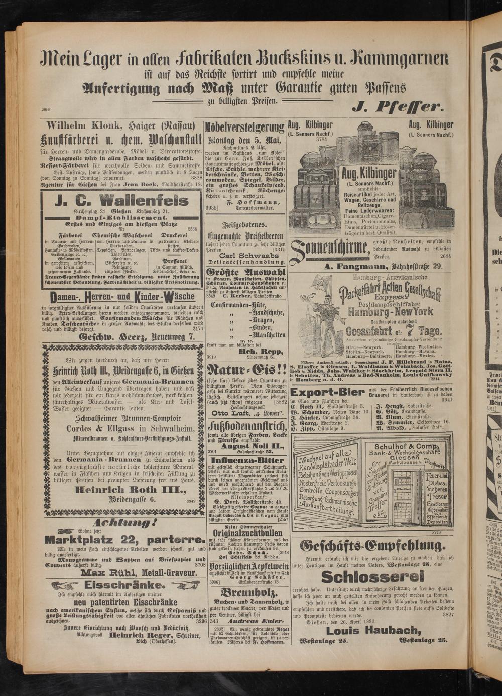 und Prompteste bedienen werde. Gießen, den 26. April 1890.