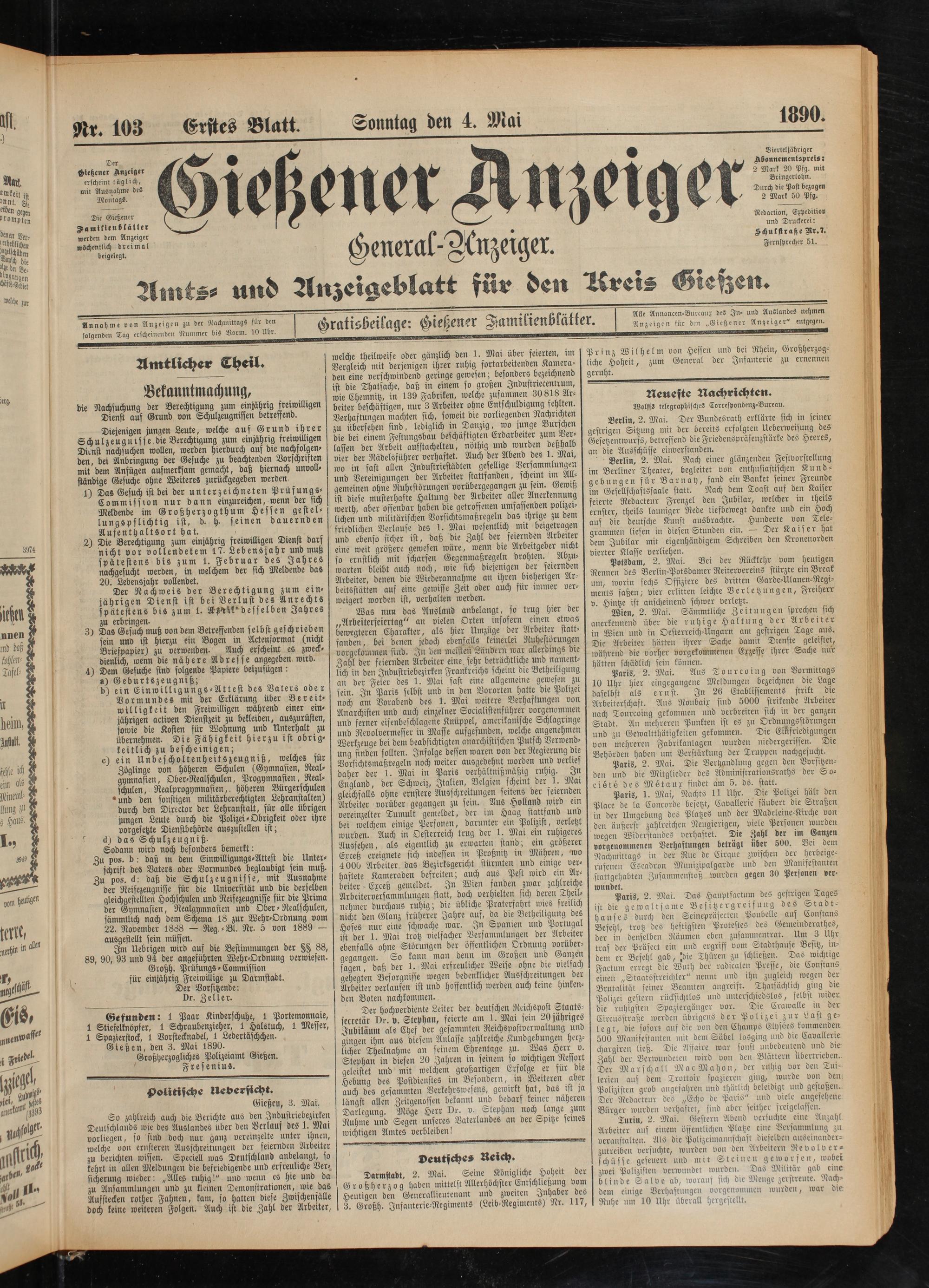 Gießen, den 3. Mai 1890.