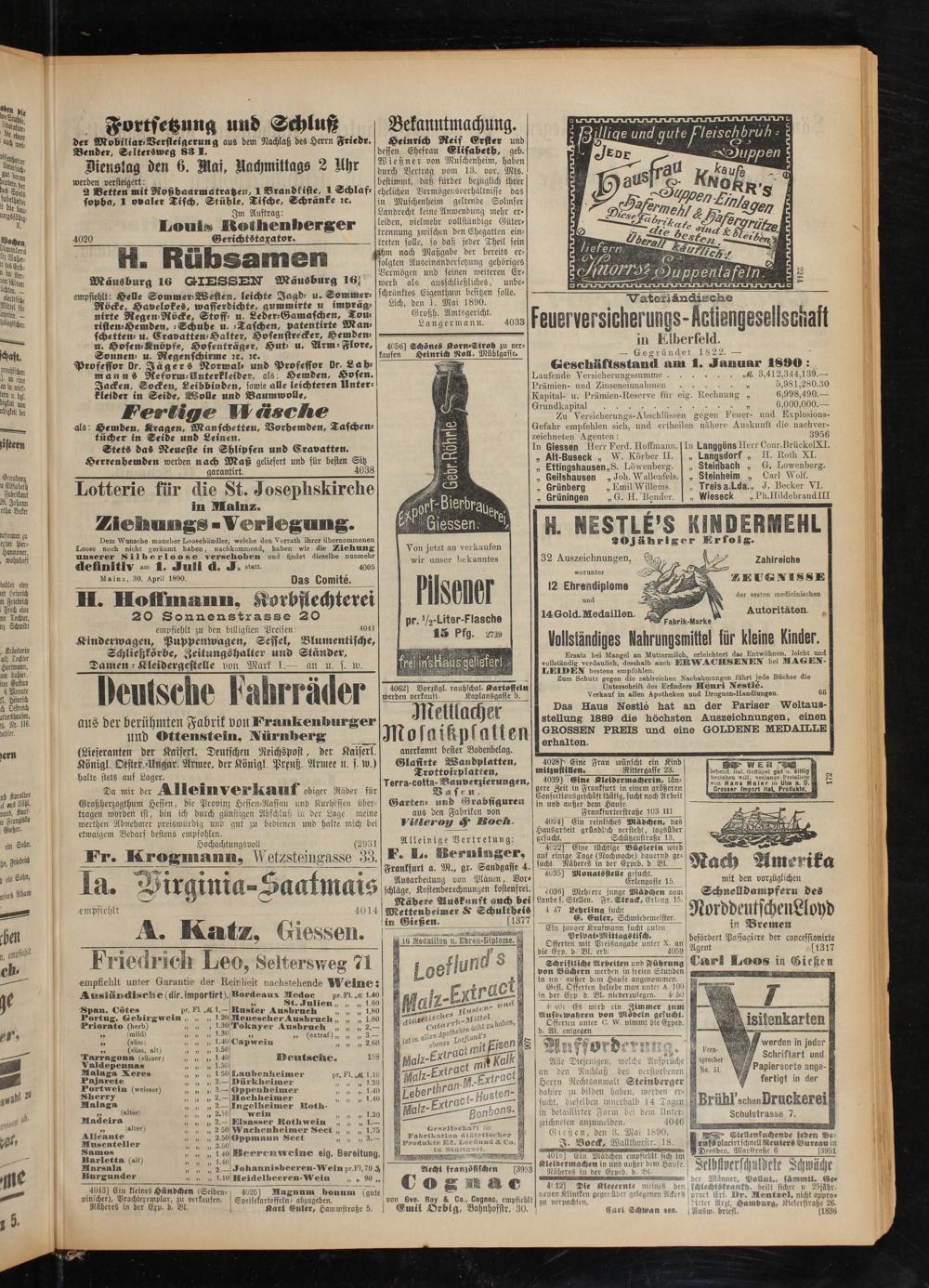 Da mir der Alleinverkauf obiger Räder für Großherzogthum Hessen, die Provinz Hessen-Nassau und Kurhessen übertragen worden ist, bin ich durch günstigen Abschluß in der Lage, meine werthen Abnehmer preiswürdig und gut zu bedienen und halte mich bei etwaigem Bedarf bestens empfohlen.