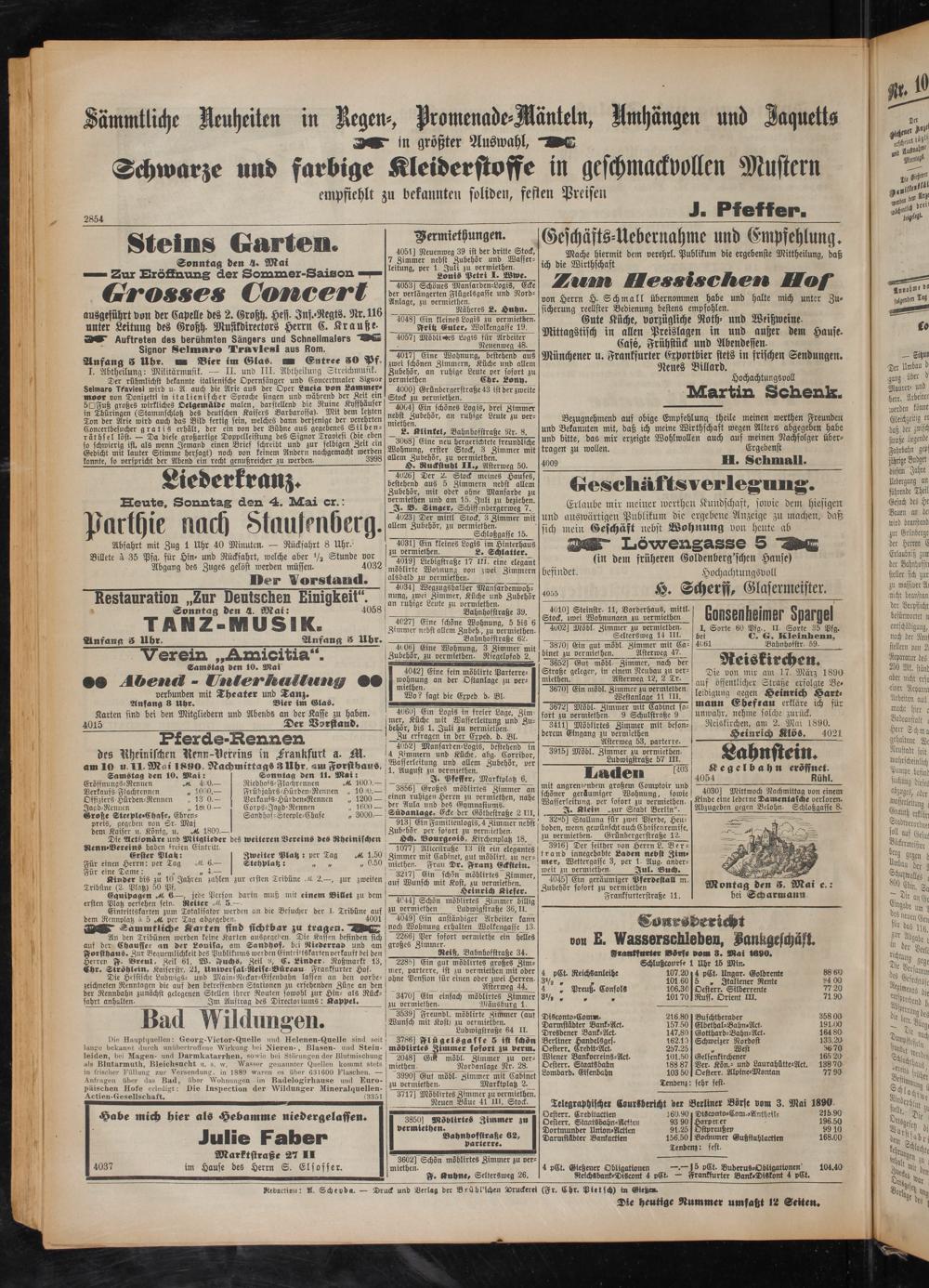 des Rheinischen Renn-Vereins in Frankfurt a. M. am 10 u 11 Mai 1890, Nachmittags 3 Uhr, -rm Forsthaus