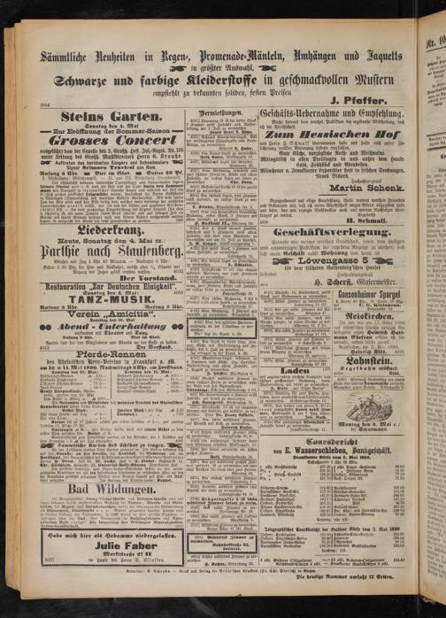 Zu/m Hessischen Hof von Herrn H. Schwall übernommen habe und halte mich unter Zusicherung reellster Bedienung bestens empfohlen.