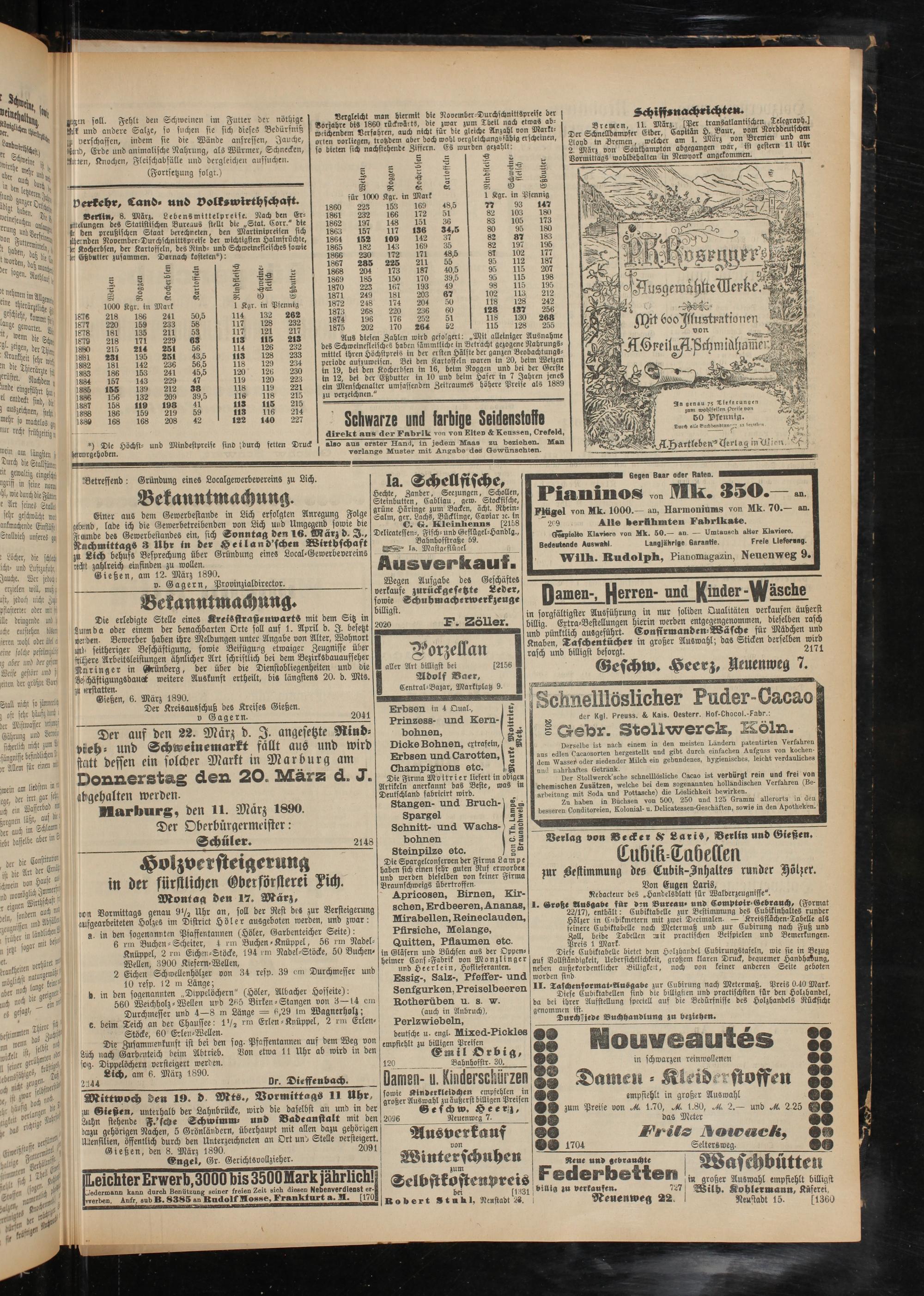 Marburg, den 11. März 1890. Der Oberbürgermeister: