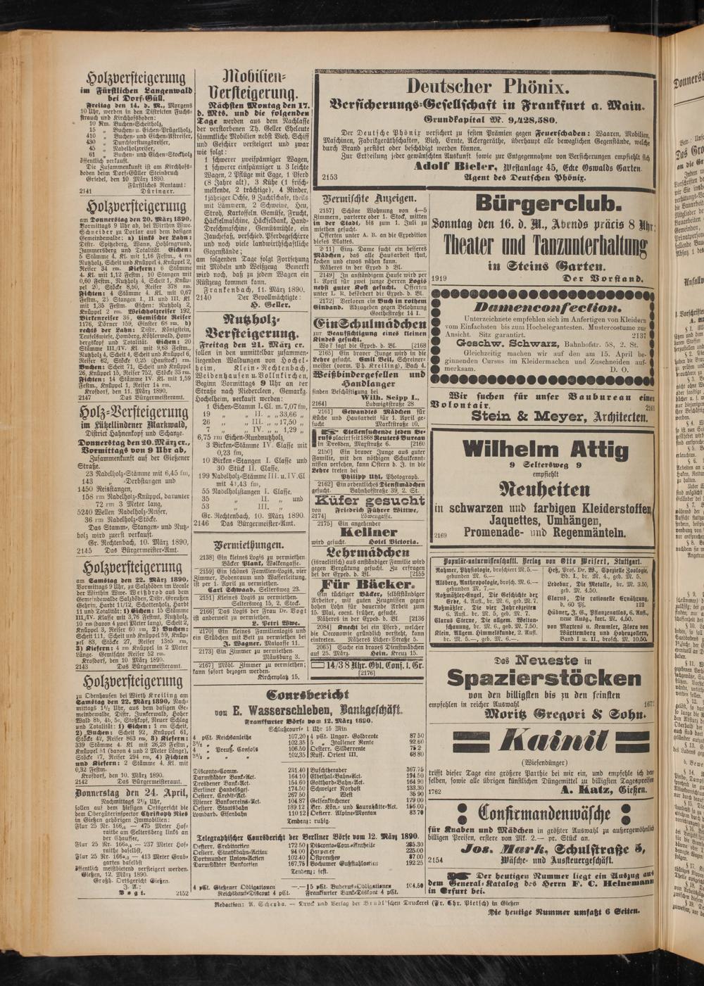 öffentlich meistbietend versteigert werden. Gießen, 12. März 1890.