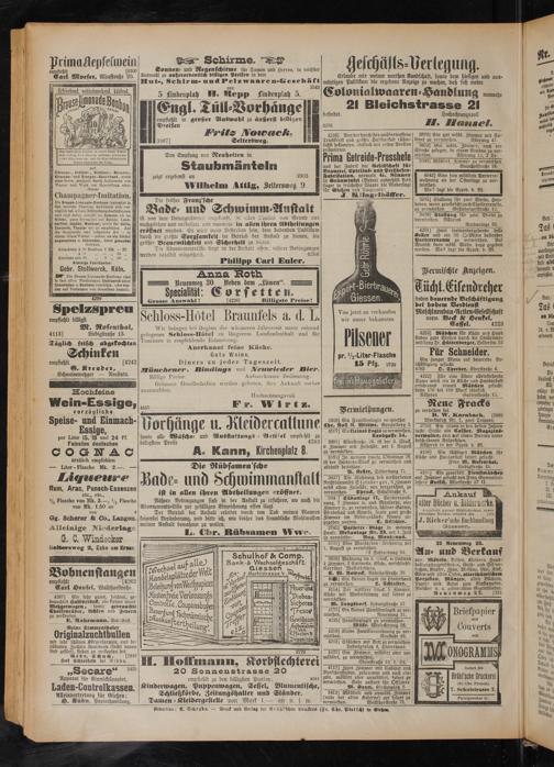 Prima Getreide-Presshefe aus der Fabrik der Gesellschaft für Brauerei Spiritus- und Preßhefen« Fabrikation, vormals G. Sinner in Grünwinkel (Baden) unterhält stets Lager in frischester Waare die Niederlage für Gießen und Umgegend:
