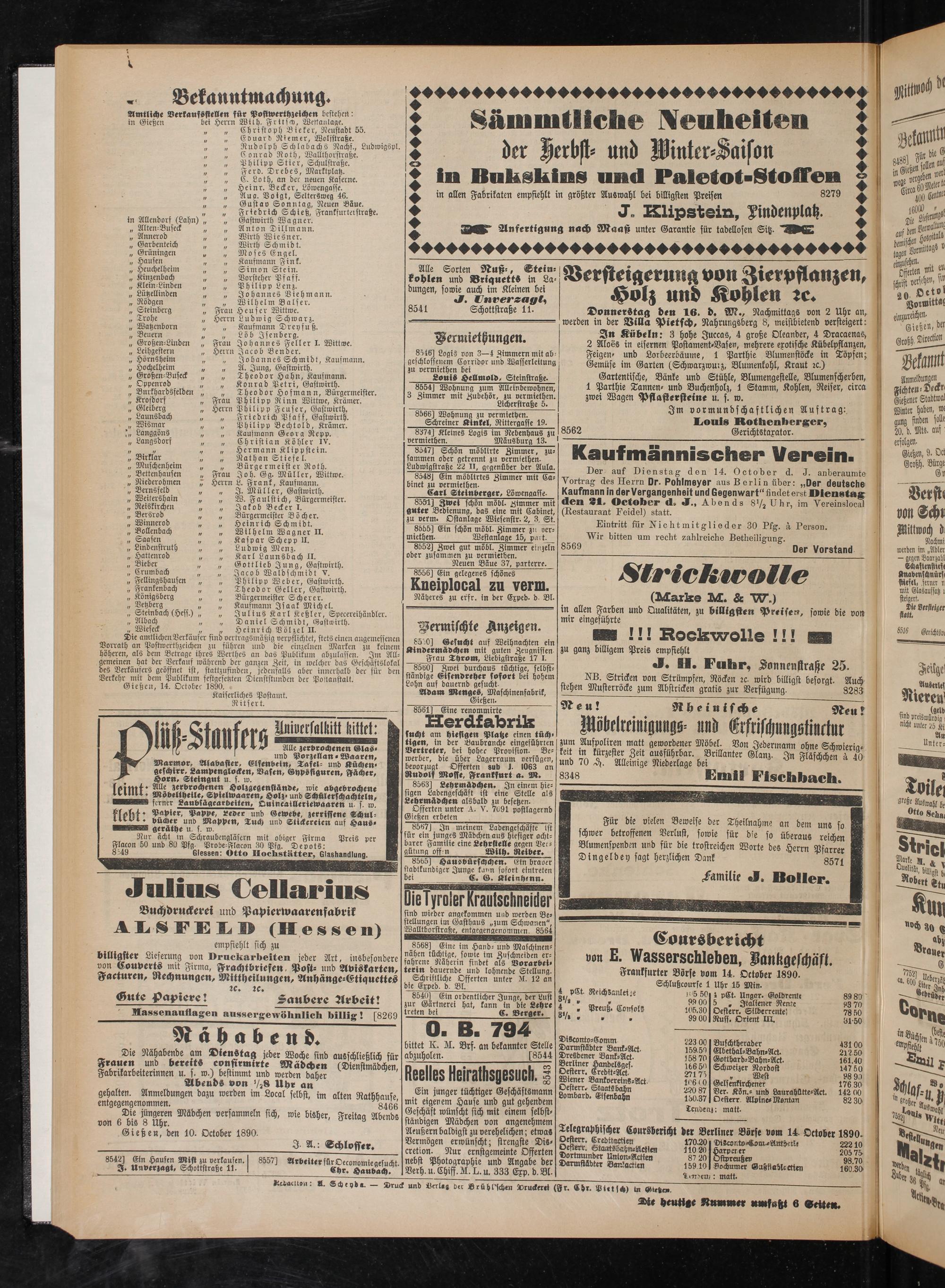 Gießen, 14. Octobec 1890.