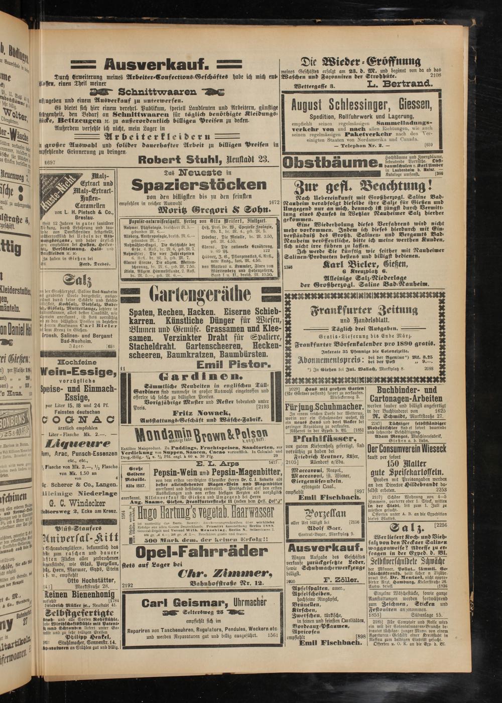 X *) In Gießen bei Jnl. Wallach, Marktplatz 8. 2088 X