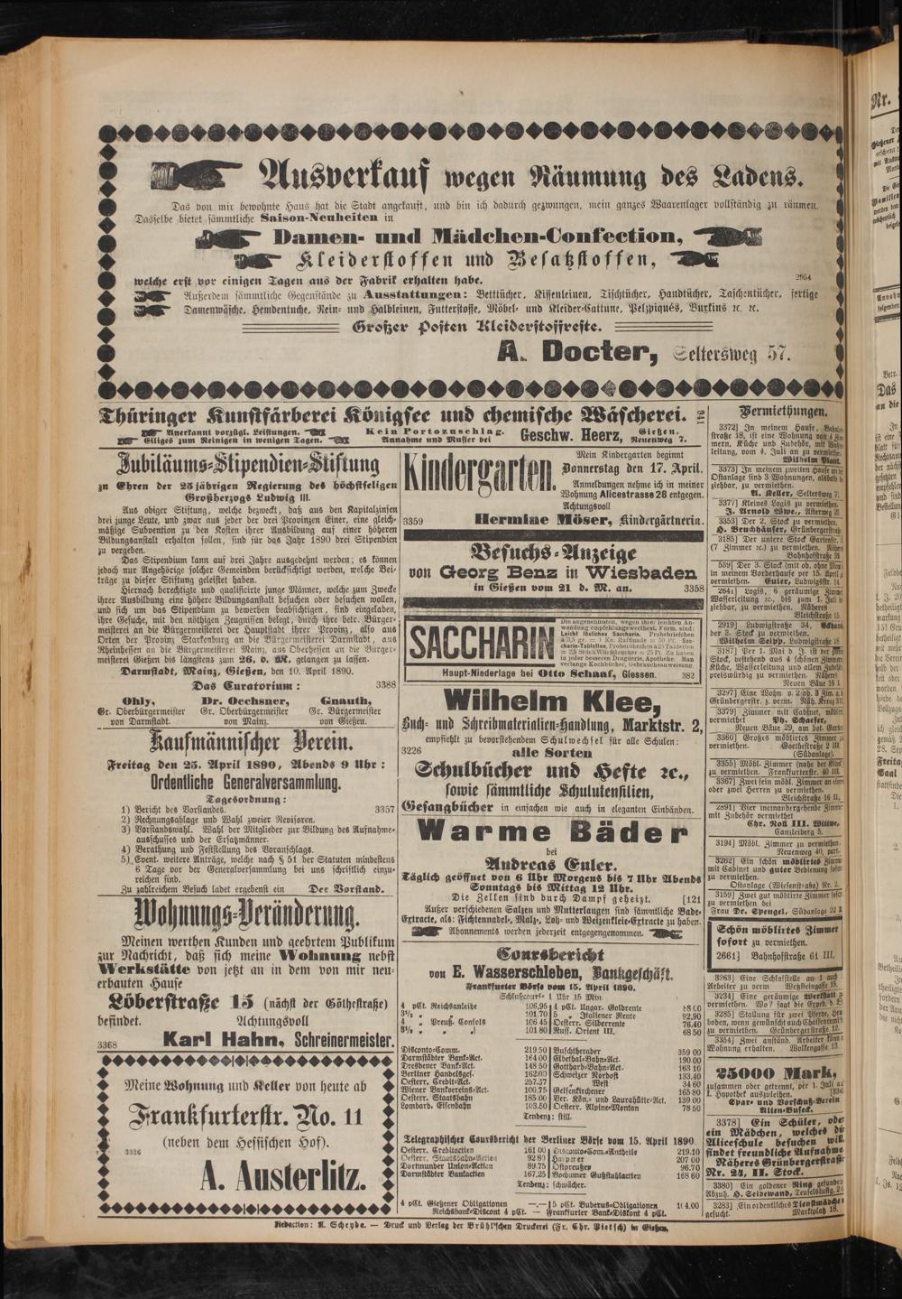 Darmstadt, Mainz, Gießen, den 10. April 1890.