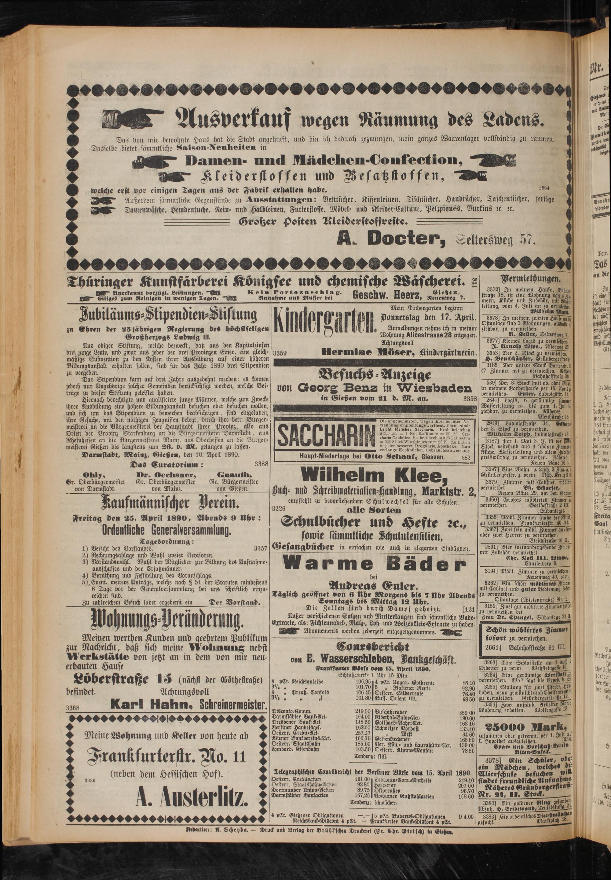 Aranksurter BSrss vom 15. April 1890.