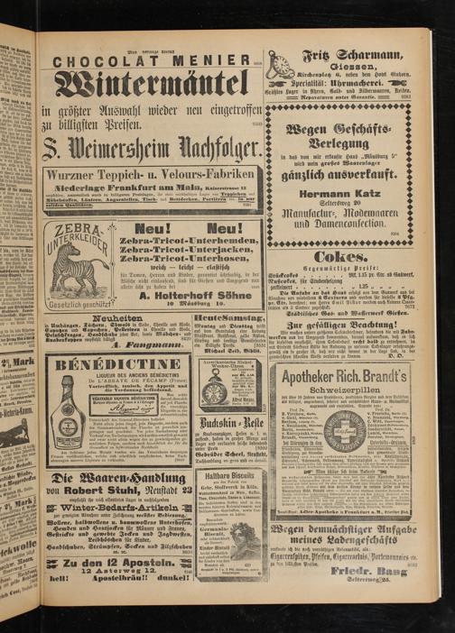 Haltbare Bisciiits aus der Fabrik von Gebr. Stollwerck in Köln. Wohlschmeckend zu Wein, Kaffee, Thee, Chocolade, Cacao u. Limonade. Die beliebtesten Sorten sind in den meisten feineren Kolonialwaaren- und Delikatessen - Geschäften, sowie Con- ditoreien zu haben.