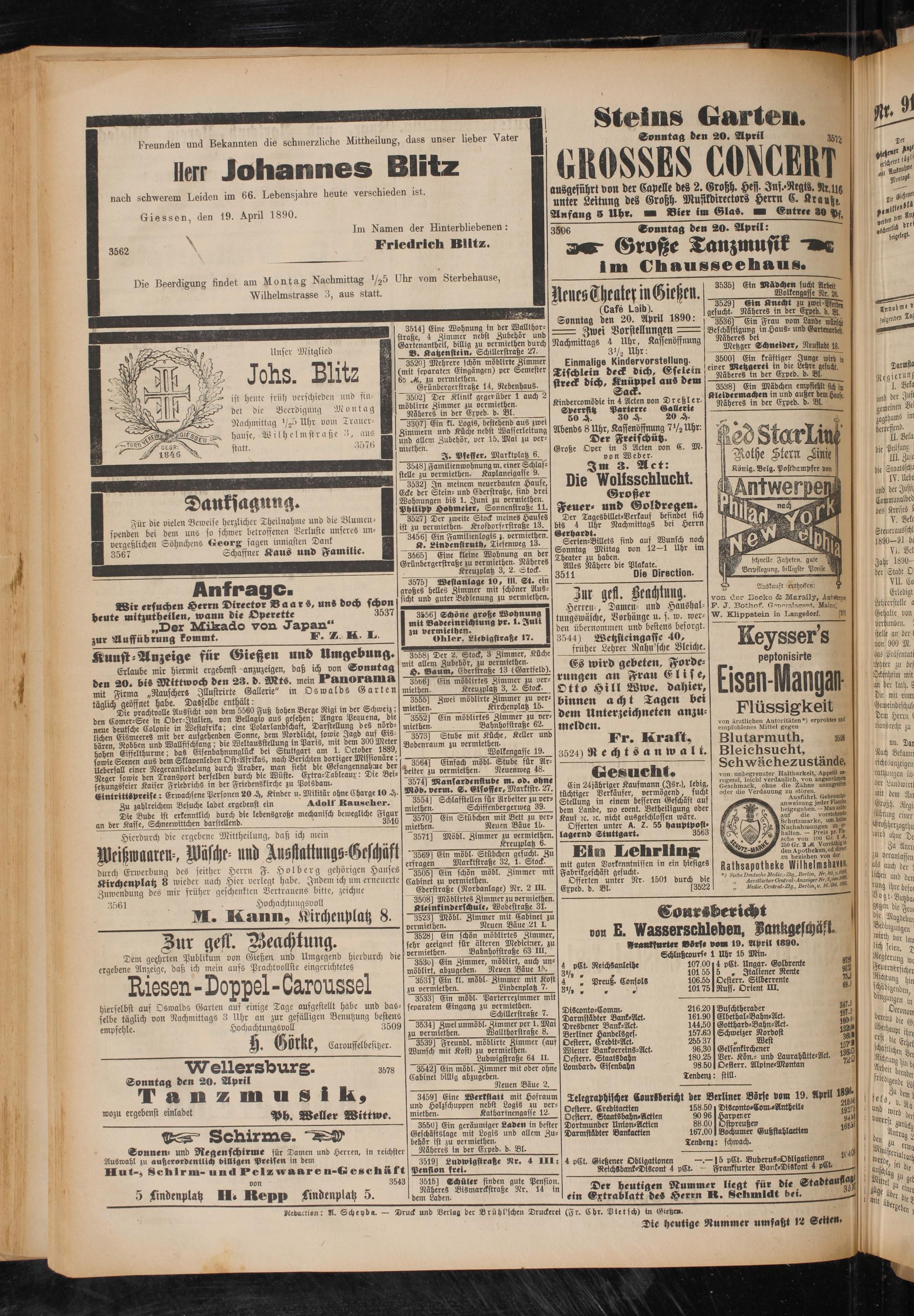 Giessen, den 19. April 1890.