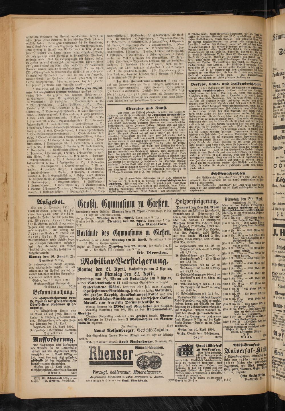 Gießen, den 15. April 1890. Großherzogliches Amtsgericht.