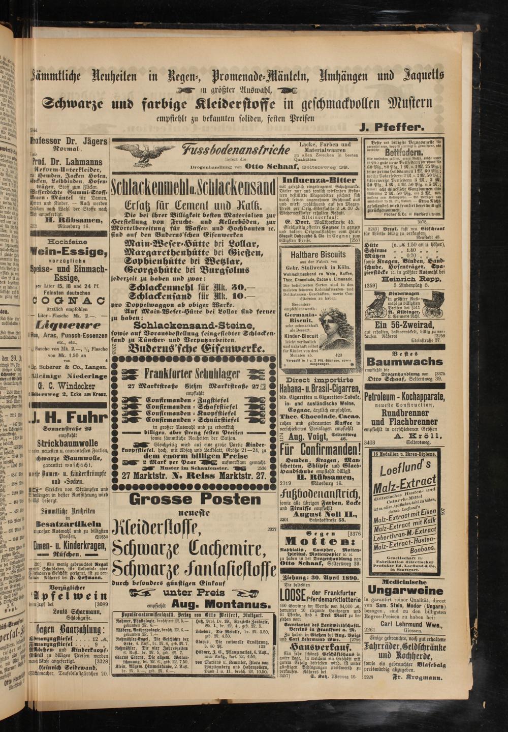 D —■ billigen, aber streng festen Preisen , A sowie sämmtliche Neuheiten der Saison.