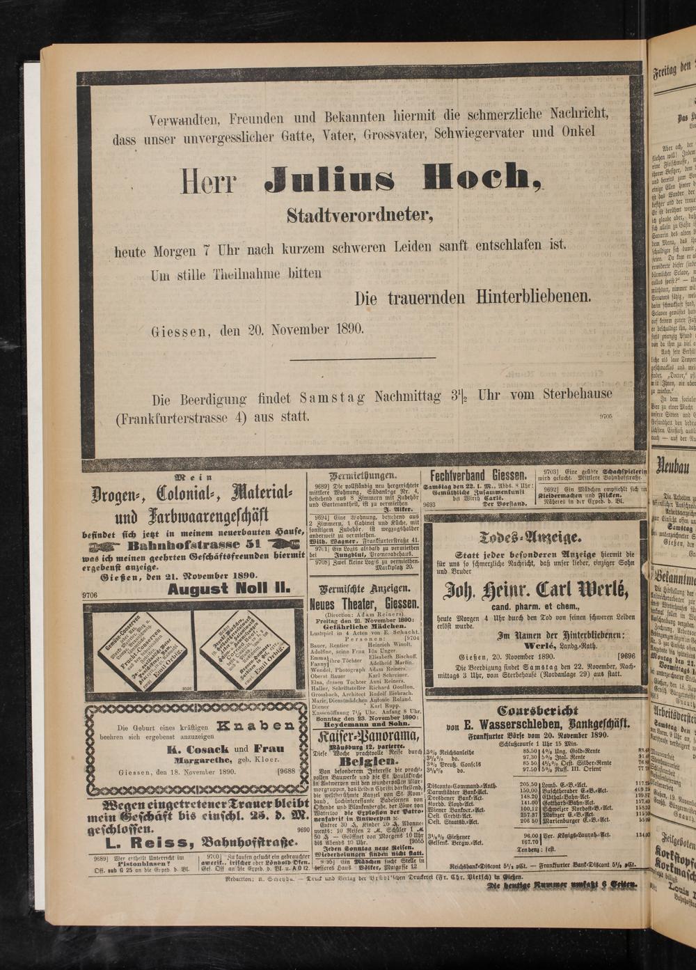Gießen, den 21. November 1890.