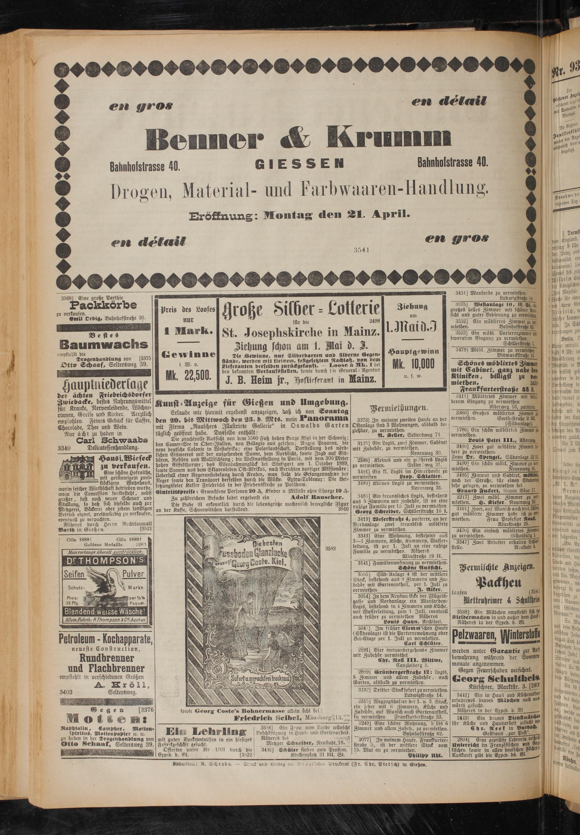 Näheres durch Herrn Rechtsanwalt Barth in Gießen. [3521