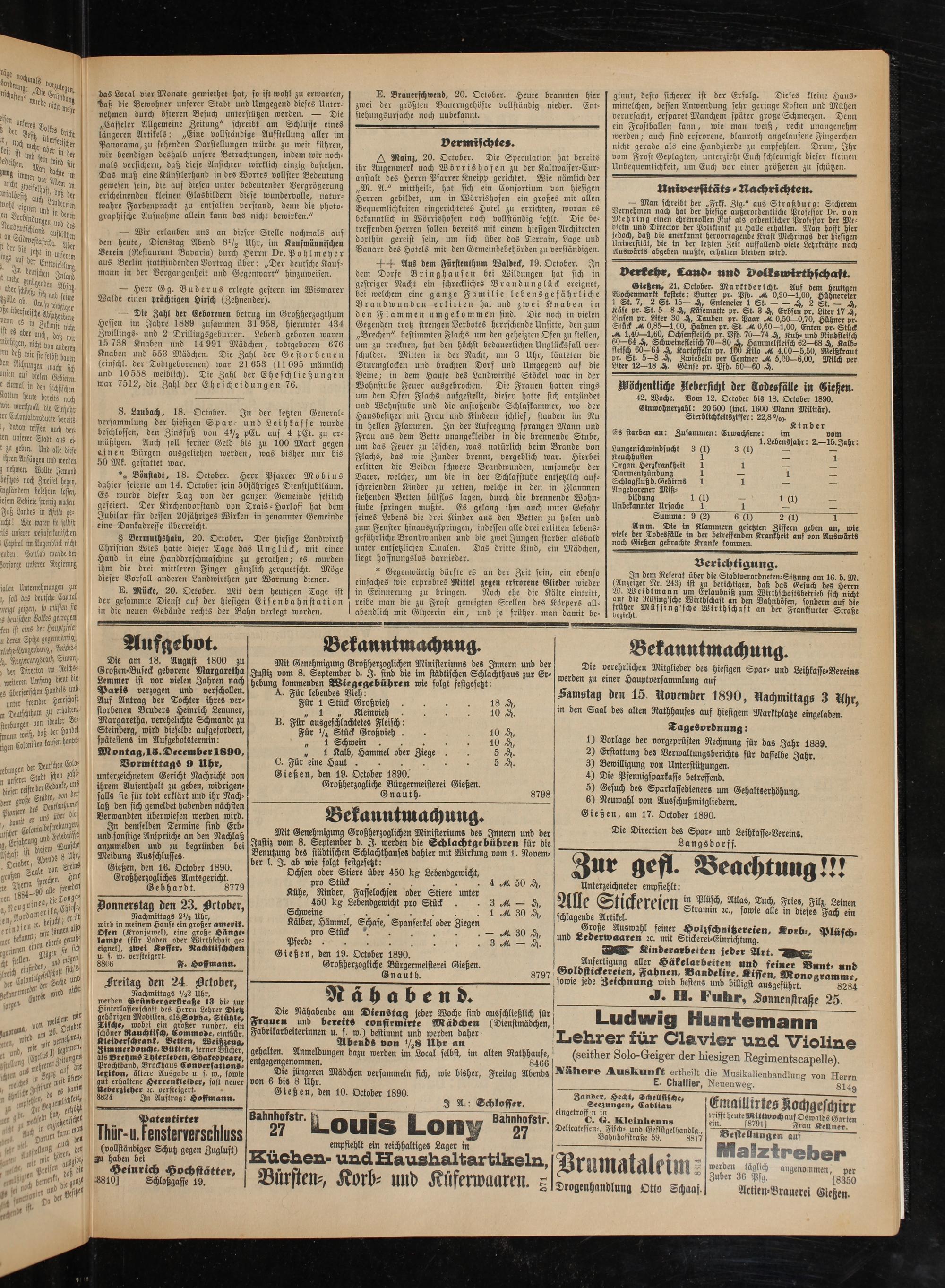 Gießen, den 19. October 1890.