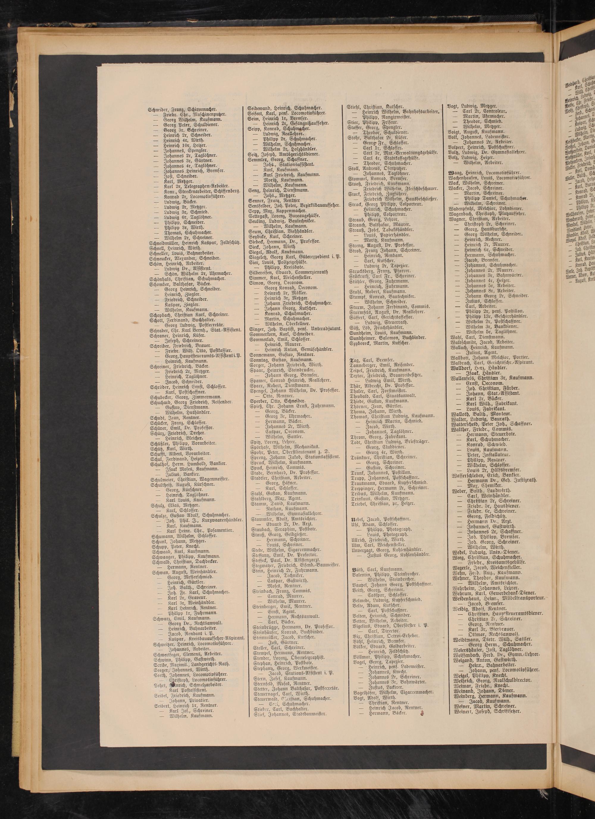 — Schön, Wilhelm 2r, Uhrmacher. Schönhals, Christian, Schuhmacher. Schomber, Balthasar, Bäcker.