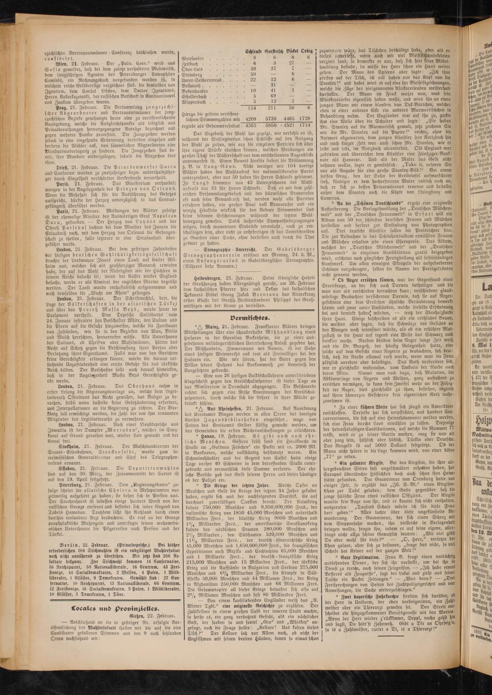 Paris, 21. Februar. Das Ministerium verhandel: In Langd stimmten von 43 Unterzeichnern des Wahlmorgen in der Angelegenheit des Prinzen von Orleans, aufruss nur 33 für Herrn Schlenke. Daß cs mit dem zahl-