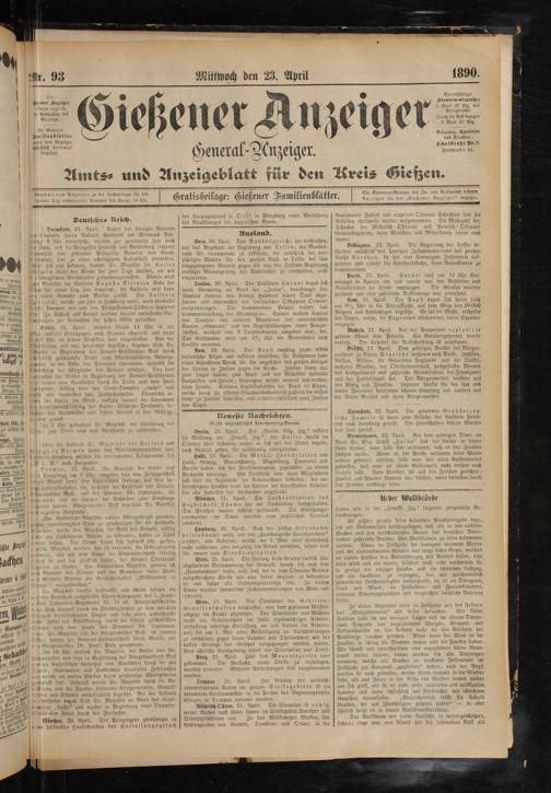 Alle Annoncen-Burcaux des In- und Auslandes nehmen Anzeigen für den „Gießener Anzeiger" entgegen.