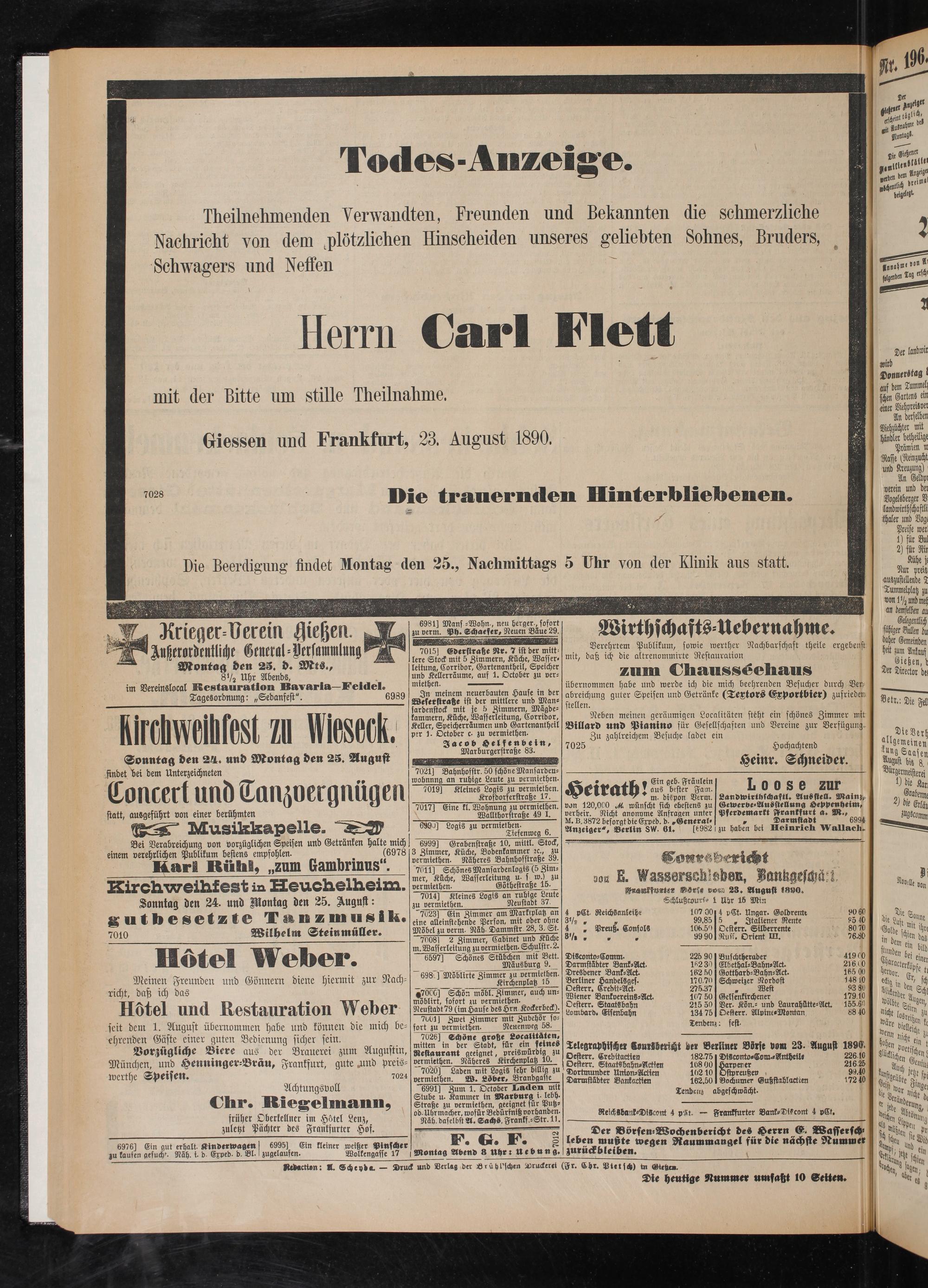Giessen und Frankfurt, 23. August 1890.