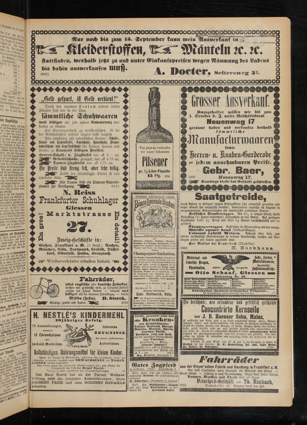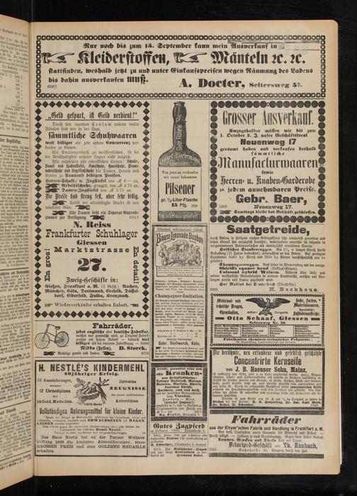Gießen, Frankfurt a. M. (2 Gesch.). Aachen, München, Cöln, Dortmund, Cresetd, Düsseldorf, Elberfeld, Fulda, Kreuznach.