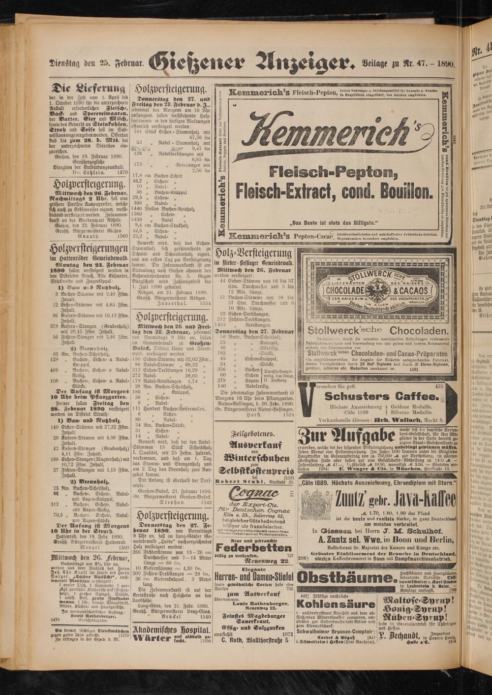 Dienstag den 25. Februar. tHietzener Anzeiger. Beilage zu Rr. 47. - isuo.