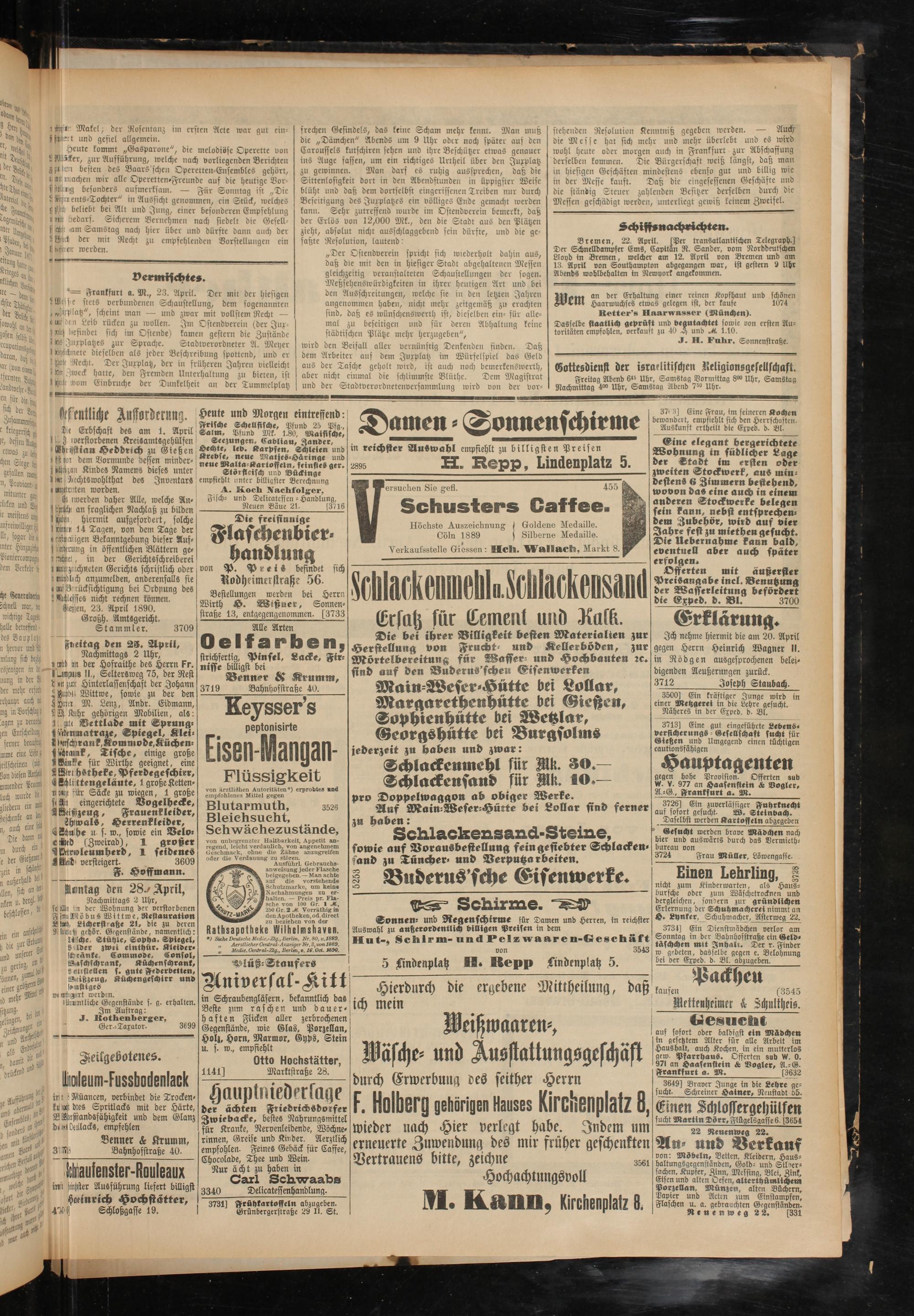 3649] Braver Junge in die Lehre ge; sucht. Schreiner Hainer, Neustadt 55. Einen Schiossergehütfen sucht Martin Dörr, Flügelsgasse 6. [3654