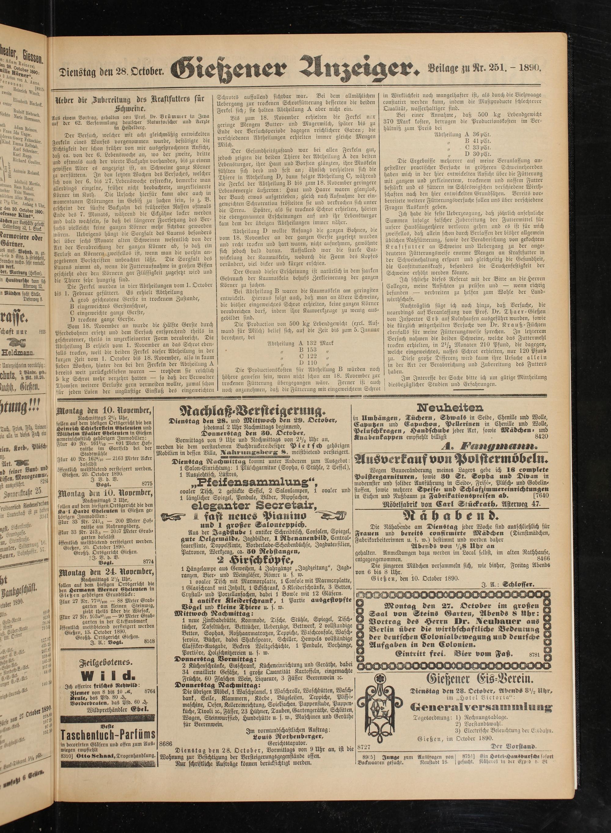Dienstag den 28. October. Gietzenev Anzeiger. Beilage zu Rr. 251. - isso.