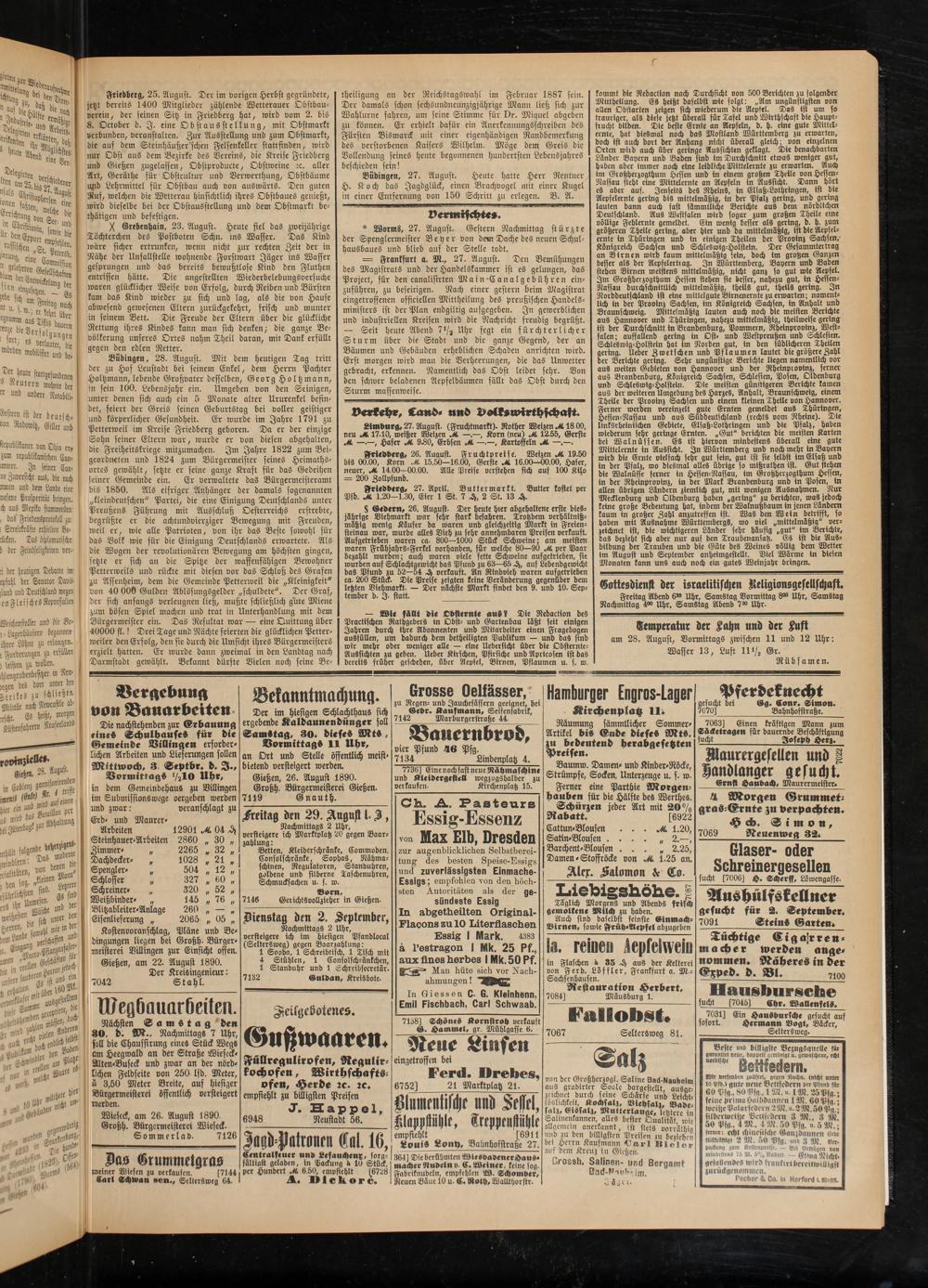 Limburg, 27. August. (Fruchtmarkt). Rother Weizen X18 00, neu Jt 17.10, weißer Weizen X , Korn (neu) X 12.55, Gerste X —, Hafer X 9.80, Erbsen X — —, Kartoffeln X
