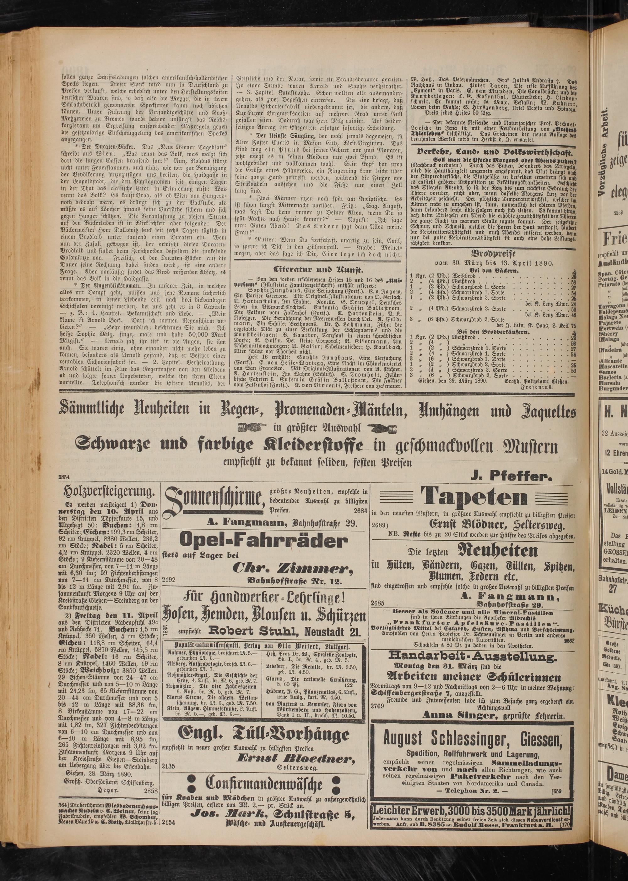Gießen, den 29. März 1890. Großh. Polizeiamt Gießen. Fresenius.