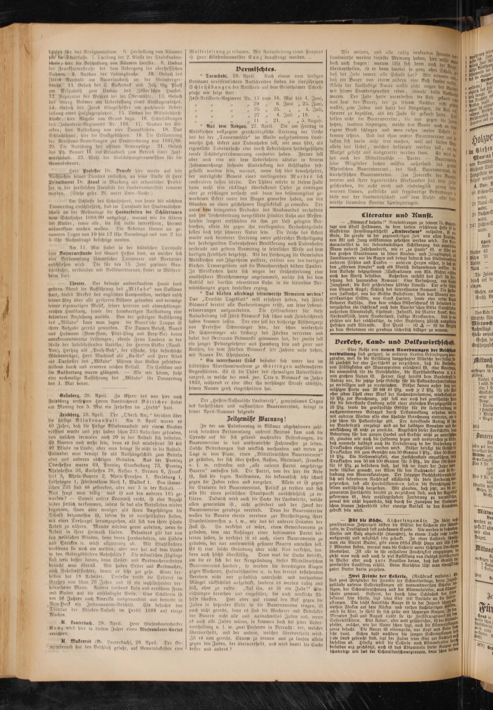 Der „Hessen Nassauische staudwirth", gemeinsames Organ de- kurhessischen und nassauischen Bauernverein-, bringt in seiner April Nummer folgende