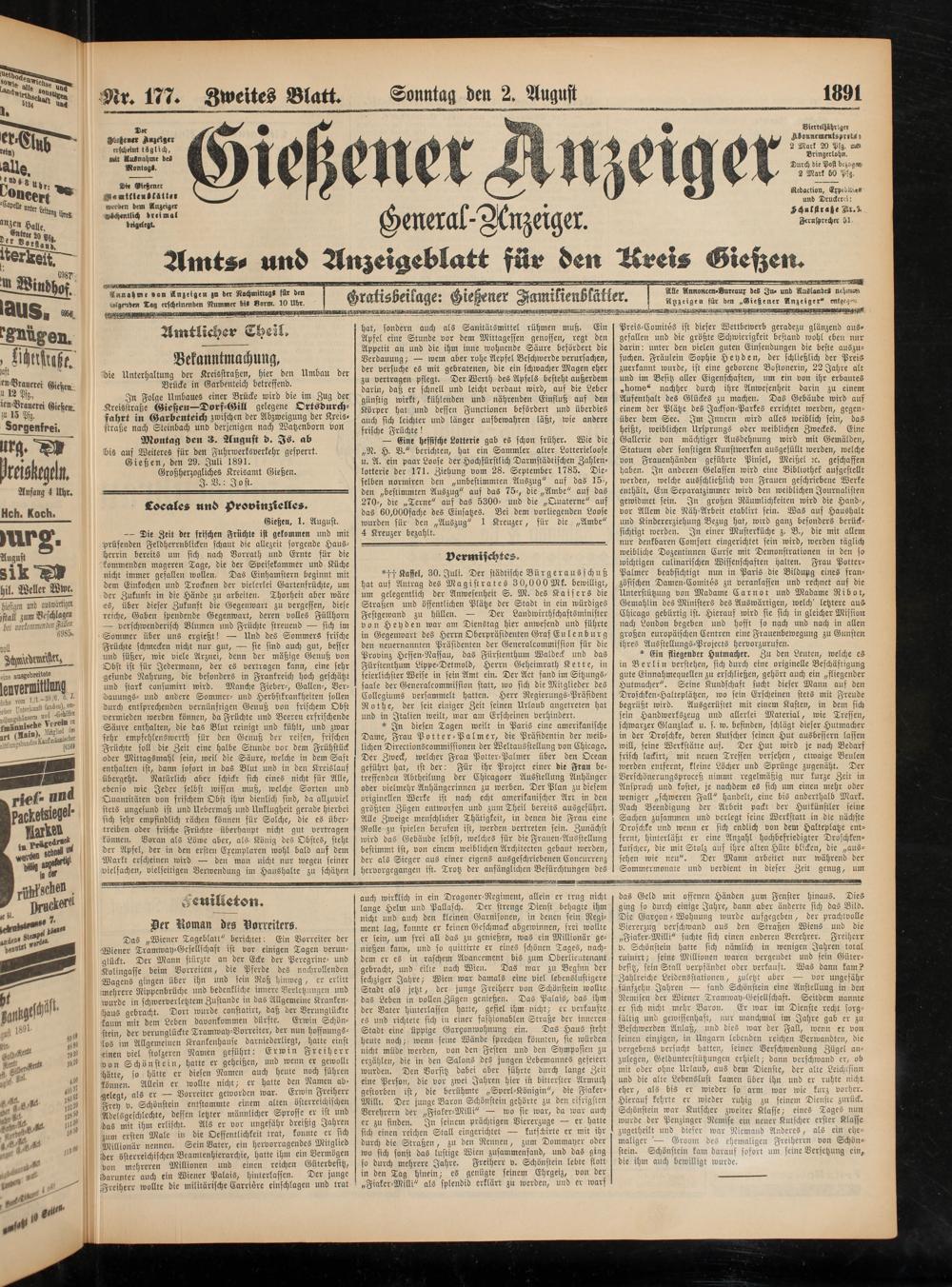 Nr. 177. Zweites Blatt. Sonntag den 2. August