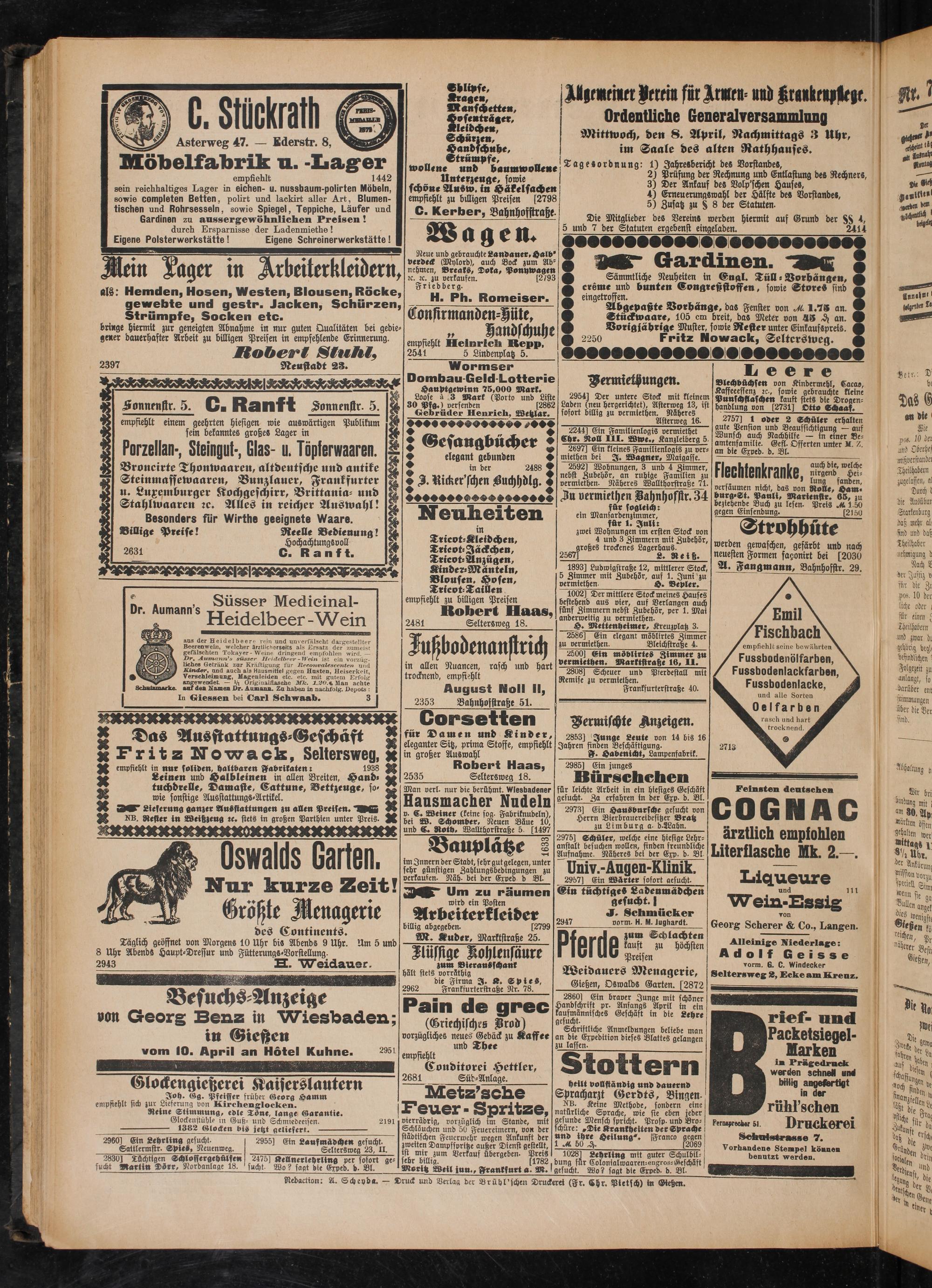 Redaction: A. Scheyda. — Druck und Verlag der Brühl'schen Druckerei (Fr. Ehr. Pietsch) in Gießen.