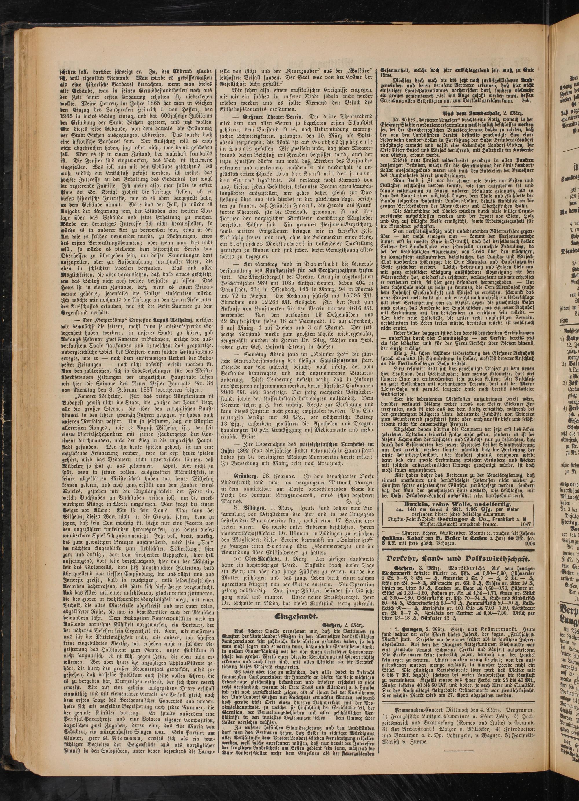 — Gießener Theater Verein. Der dritte Theaterabend wird dem von allen Seiten so begehrten ersten Schauspiel gehören- dem Vorstand ist es, nach Ueberwindung mannigfacher Schwierigkeiten, gelungen, den 19. März als Spielabend festzusetzen- die Wahl ist auf GoethesJphigenie in Tauris gefallen. Wir zweifeln nicht, daß jeder Theaterfreund diesen Beschluß mit Freuden begrüßen wird; auch der letzte Zweifler dürste nun wohl daA Streben des Vorstandes erkennen und anerkennen, nachdem er die wiederholt so unglücklich citirtePhrase „von derKunst mit der sinnenden Stirn" legalisirte. Es verlangt wohl Niemand von uns, diesem jedem Gebildeten bekannten Drama einen Empfehlungsbrief auszustellen, wir gehen daher gleich zur Darstellung über und sind hierbei in der glücklichen Lage, berichten zu können, daß Fräulein Fr a n k, die Heroin des Frankfurter Theaters, für die Titelrolle gewonnen ist und ihre Partner der vorzüglichen Künstlerin ebenbürtige Mitglieder derselben Bühne sind. Ein genaues Personen-Verzeichniß, sowie weitere Einzelheiten bringen wir in kürzester Zeit. Aufrichtig freuen wir uns, ohne die Beschwerden einer Reise, ein klassisches Meisterwerk in vollendeter Darstellung genießen zu können und sind sicher, dieser Genugthuung aller- wärts zu begegnen.