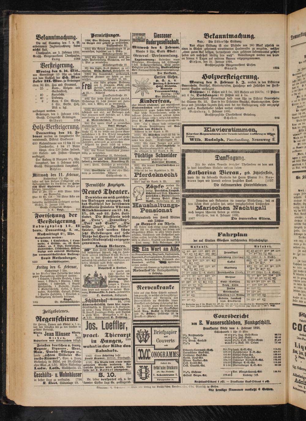 Odenhausen, am 3. Februar 1891. Großh. Bürgermeisterei Odenhausen.