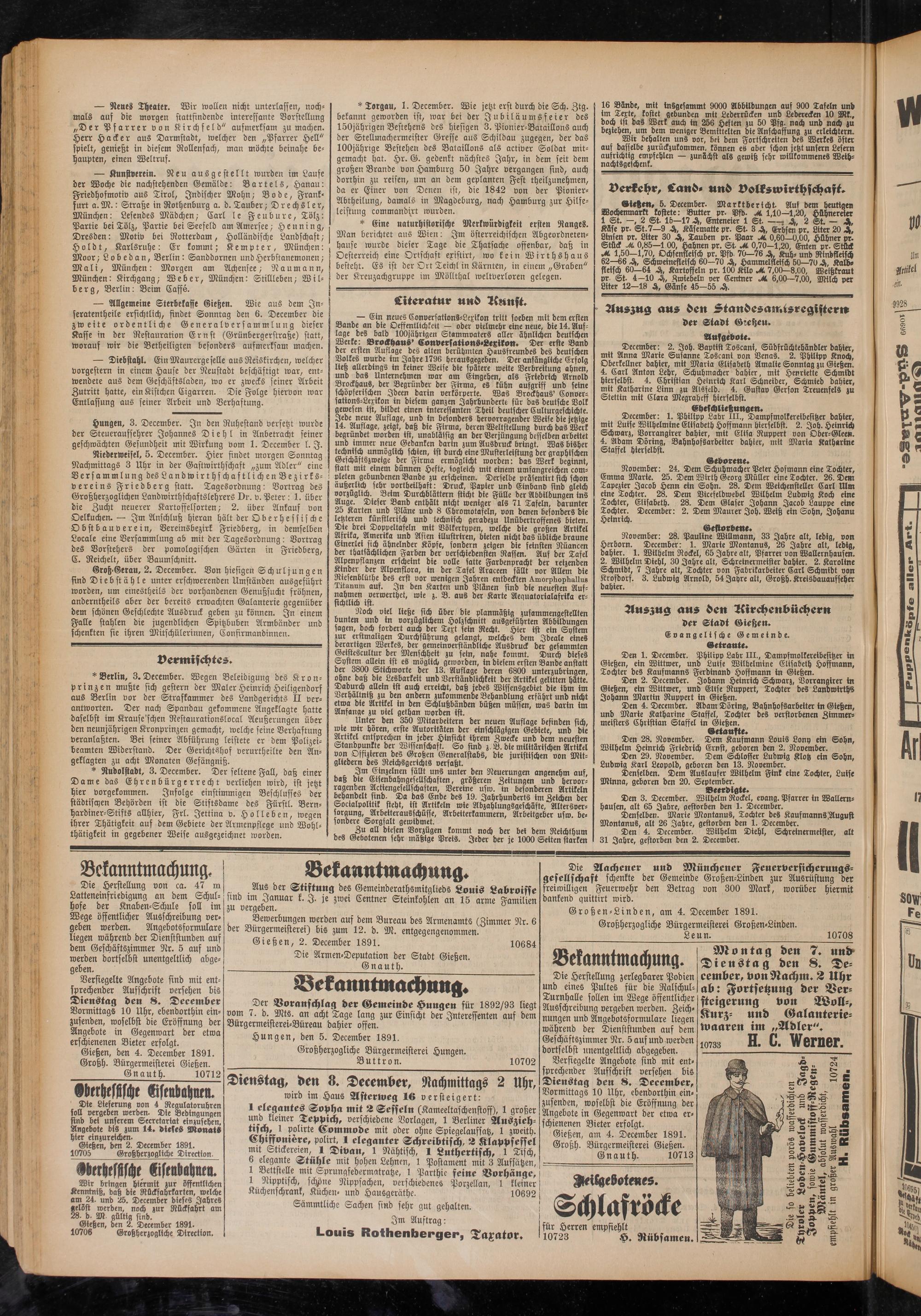 Den 1. December. Philipp Labr III., Dampfmolkereibesitzer in Gießen, ein Wittwer, und Luise Wilhelmine Elisabeth Hoffmann, Tochter des Kaufmanns Ferdinand Hoffmann in Gießen.