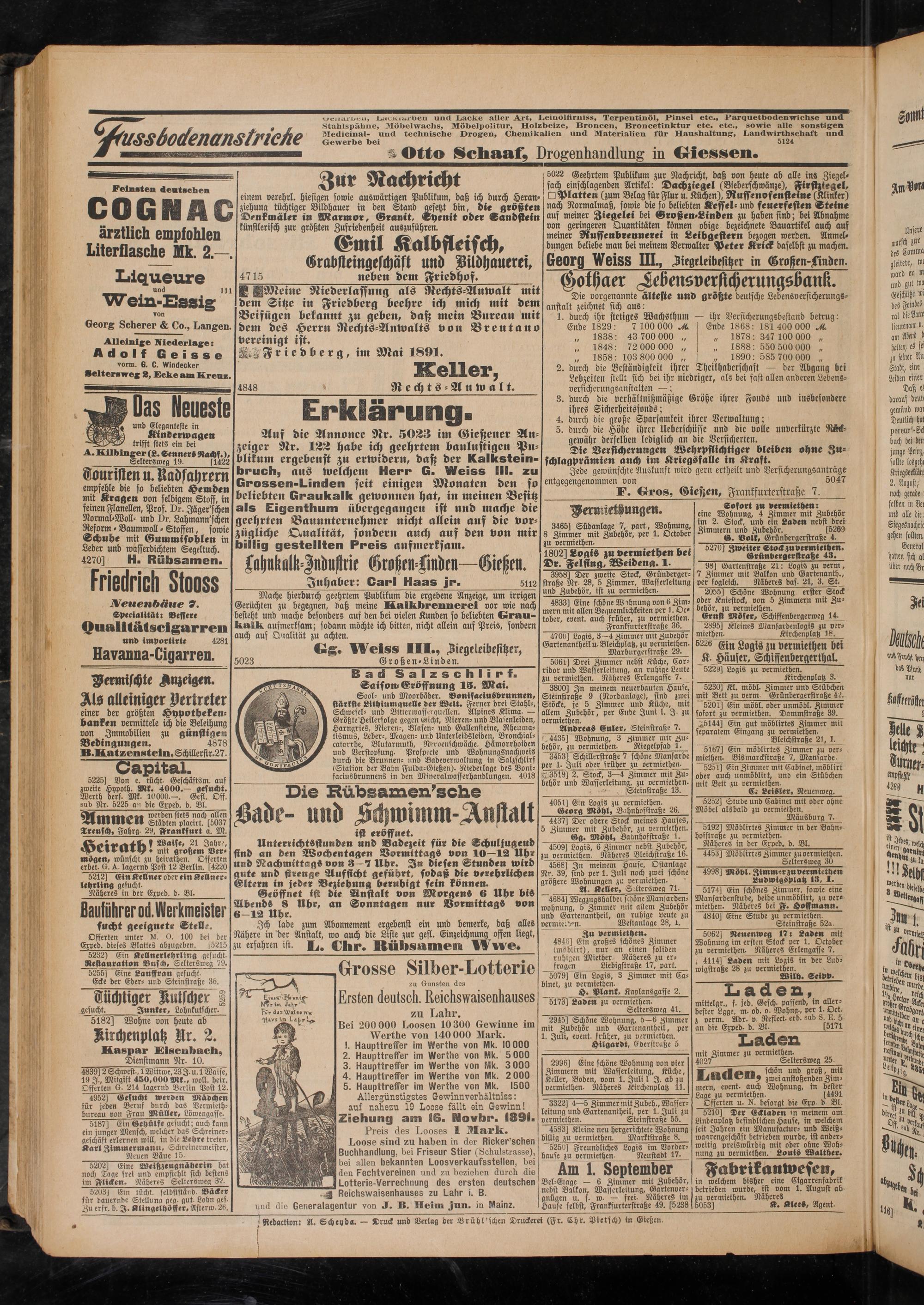 ! Redaction: A. Scheyda. — Druck und Verlag der Brühl'schen Druckerei (Fr. Ehr. Pietsch) in Gießen.