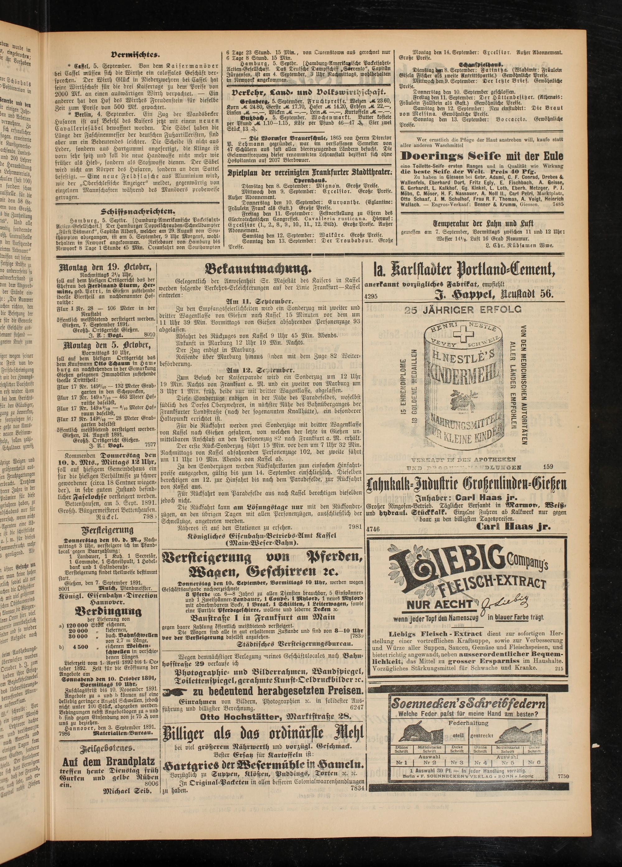 Gelegentlich der Anwesenheit Sr. Majestät des Kaisers in Kassel werden folgende Verkehrs-Erleichterungen auf der Linie Frankfurt—Kassel eintreten: