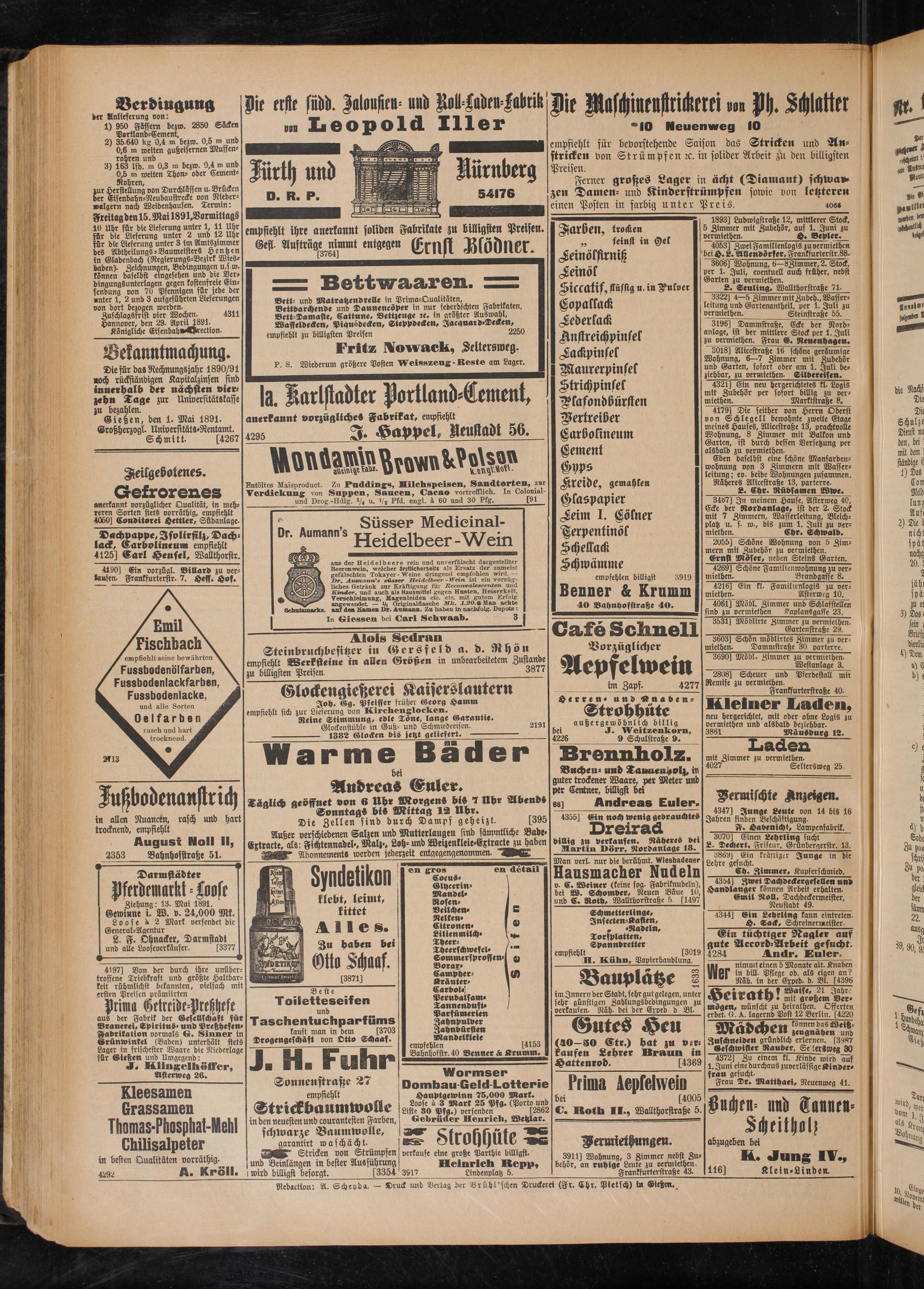 Nedactton: A. Schepda. — Druck und Verlag der Brühl'schen Druckerei (Fr. Ehr. Pietsch) in Gießen.^
