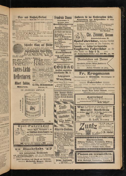 Opel-Fahrräder, deutsches Fabrikat ersten Ranges, ausgerüstet mit allen Neuheiten, wie: Pneumatic und Cushion-Tyre-Gummireifen.