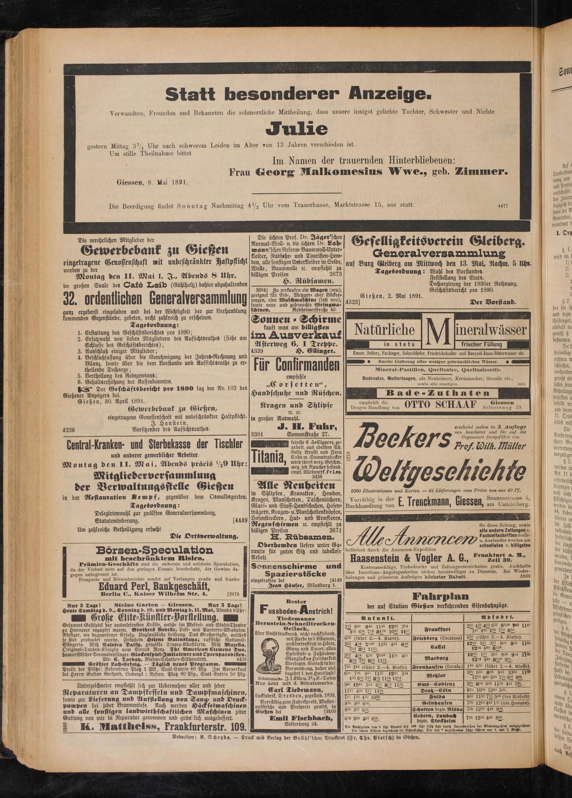 IcS3- Der Geschäftsbericht pro 1890 lag der Nr. 102 des Gießener Anzeigers bei.