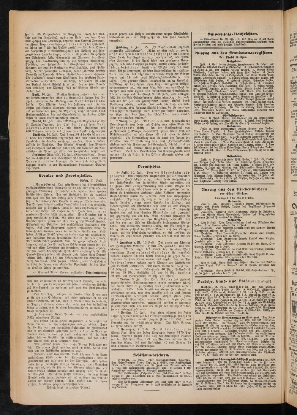 Juli: 8. Johs. Braun, Hilfsbremser bei der Main-Weser- Bahn dahier, mit Marie Reithel hierselbst. 8. Fried. Karl Heußinger, Glaser zu Grünberg, mit Ida Cäcilie Clara Prowasneck dahier.